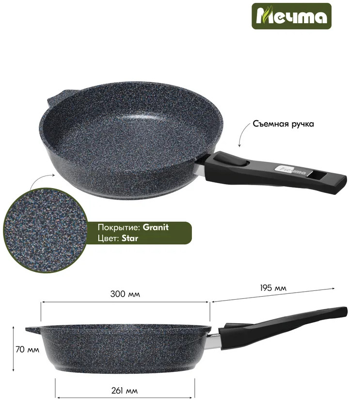 Мечта Сковорода со съемной ручкой «Гранит Star»
