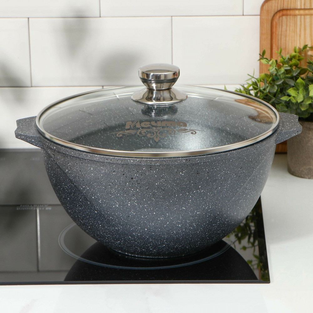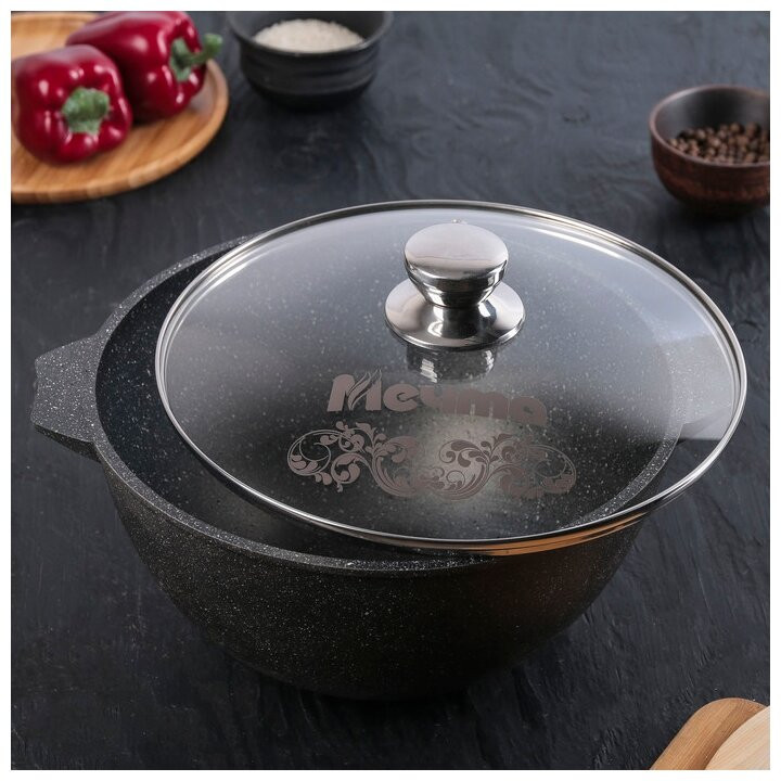 Казан изготовлен из высококачественного алюминия с толстыми стенками, что обеспечивает равномерное распределение тепла и идеальное приготовление пищи. Антипригарное покрытие позволяет легко ухаживать за казаном и готовить без лишних усилий. Стеклянная крышка позволяет контролировать процесс приготовления, не открывая казан, что помогает сохранить аромат и вкус блюд. Казан также удобно использовать на плите, мангале или в печи, чтобы создать неповторимый вкус и атмосферу. Казан станет незаменимым помощником на кухне, принесет много радости и удовольствия. Проведите время с близкими в лесу, у костра, наслаждаясь вкусными блюдами, теплом огня и приятной атмосферой!