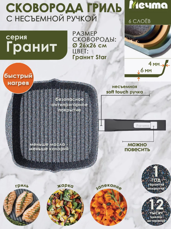 Мечта Сковорода-гриль «Гранит»-25% +452