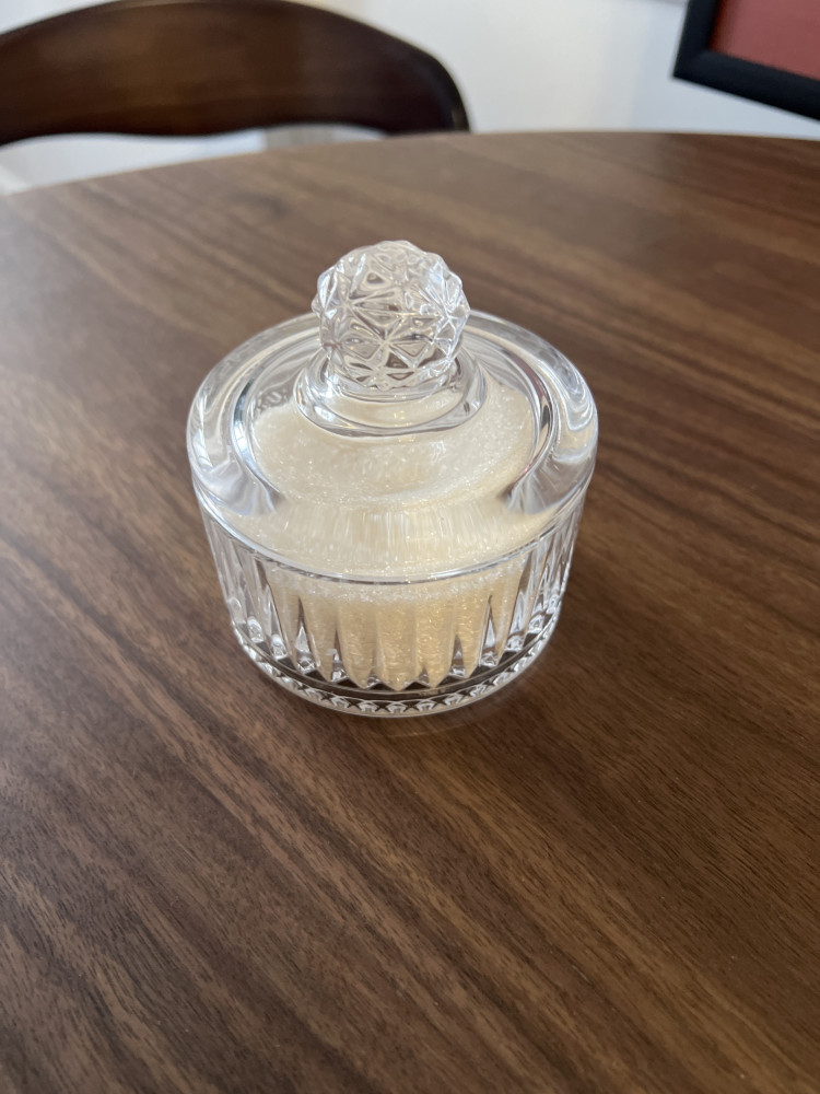 Красивая сахарница , прочное стекло, прозрачное и с красивым узором