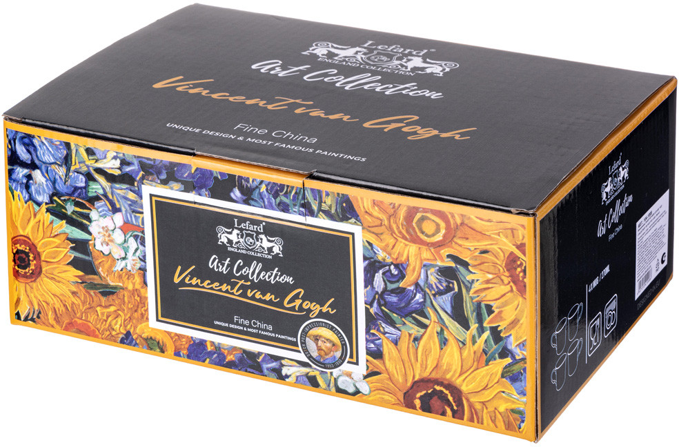 Арт Коллекция для ценителей прекрасного. Изделия из тонкостенного фарфора. Посуда прошла сертификацию. Безопасна для контакта с пищевыми продуктами. Декор по мотивам картин Винсента Ван Гога. Удобная форма. Отличный подарок. Разрешено использование в микроволновой печи, можно мыть в посудомоечной машине мягкими моющими средствами.