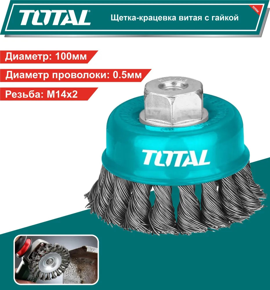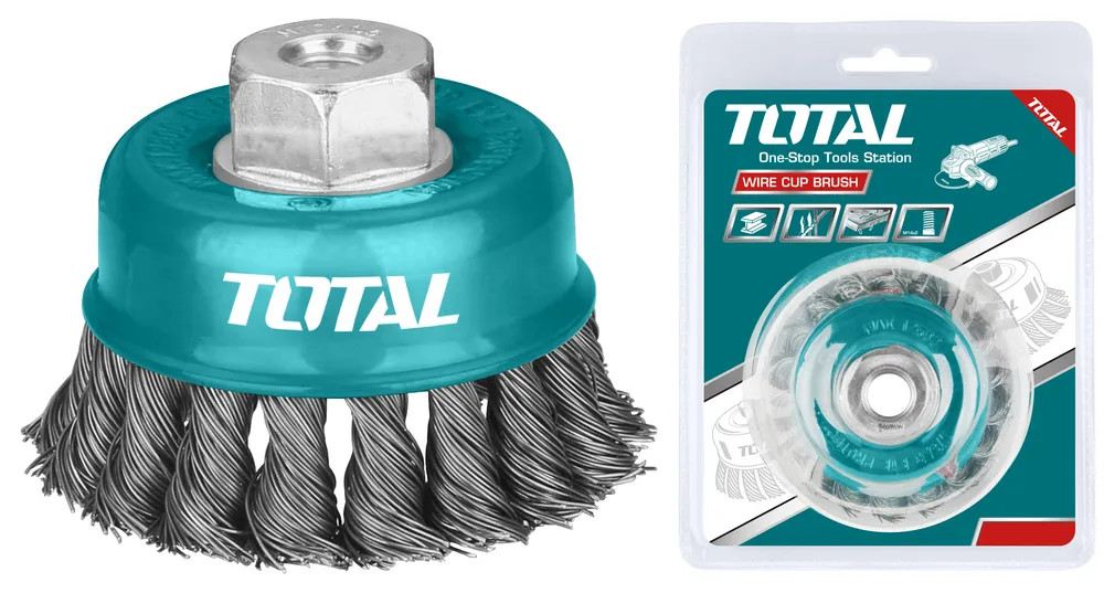 TAC32041 — специальная чашечная витая щетка для угловых шлифовальных машин. Применяется для очистки различных поверхностей и изделий от лака, краски и ржавчины. Рабочая часть состоит из скрученной стальной волнистой проволоки.