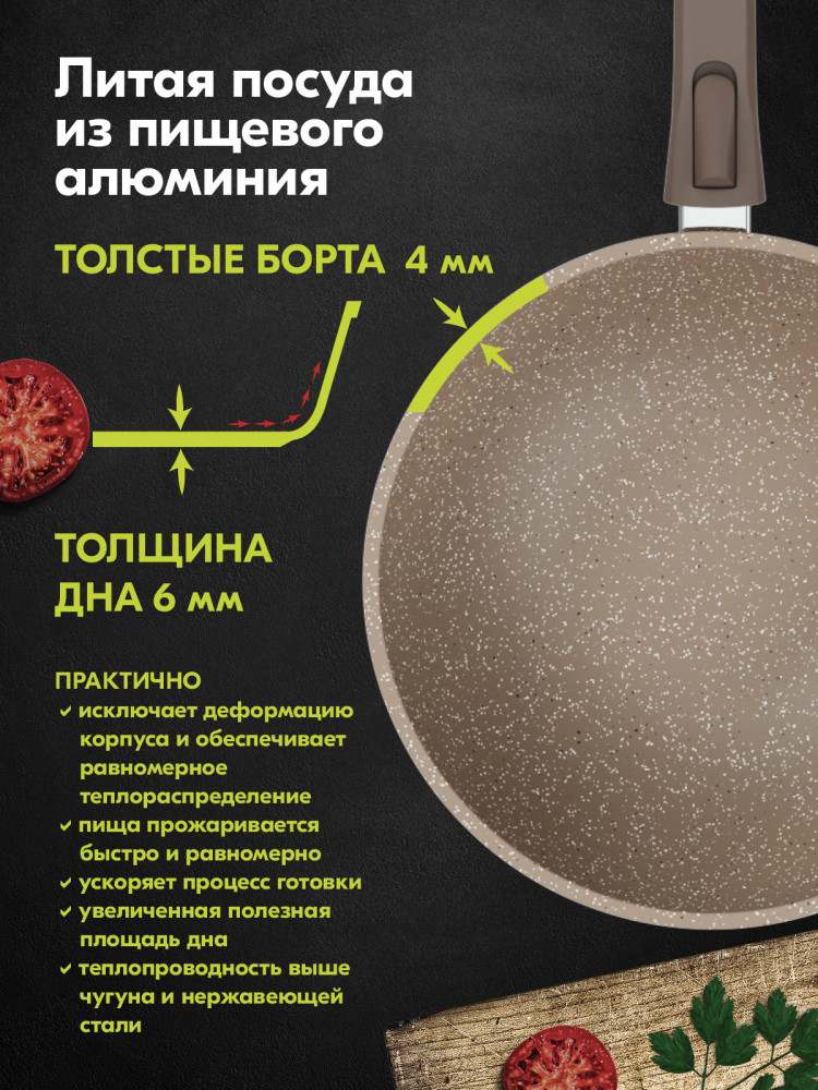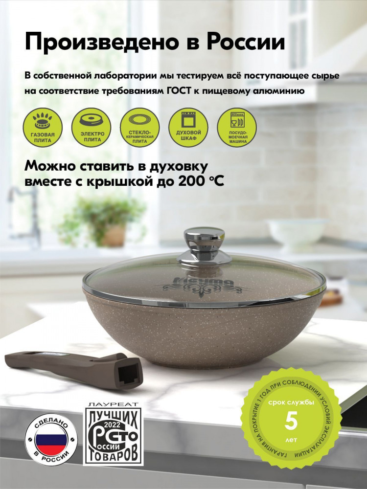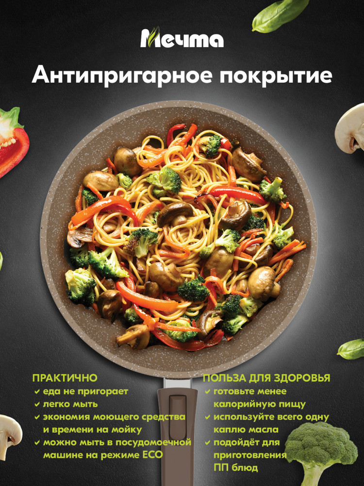 Мечта Сковорода-вок со съемной ручкой «Гранит»В данный момент этот товар отсутствует в продаже. Возможно, у нас найдется аналогичный или похожий товар здесь. Серия: Гранит Сковорода из литого алюминия «Мечта» станет полезным инструментом на кухне. Многофункциональная сковорода отлично подойдёт для приготовления разнообразных блюд из мяса, рыбы и овощей. На ней можно жарить, тушить, томить и пассеровать. Благодаря слою с содержанием кристаллов металлов, покрытие отличается особой износостойкостью и повышенными антипригарными свойствами. Не содержит PFOA. Не впитывает запахов. |