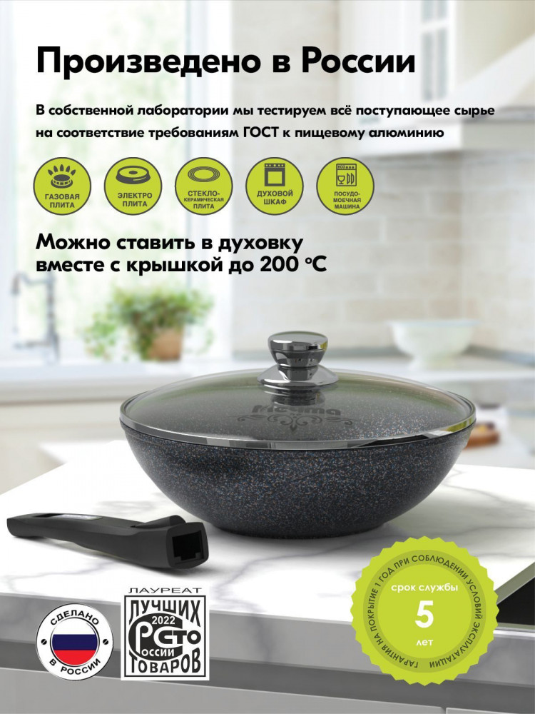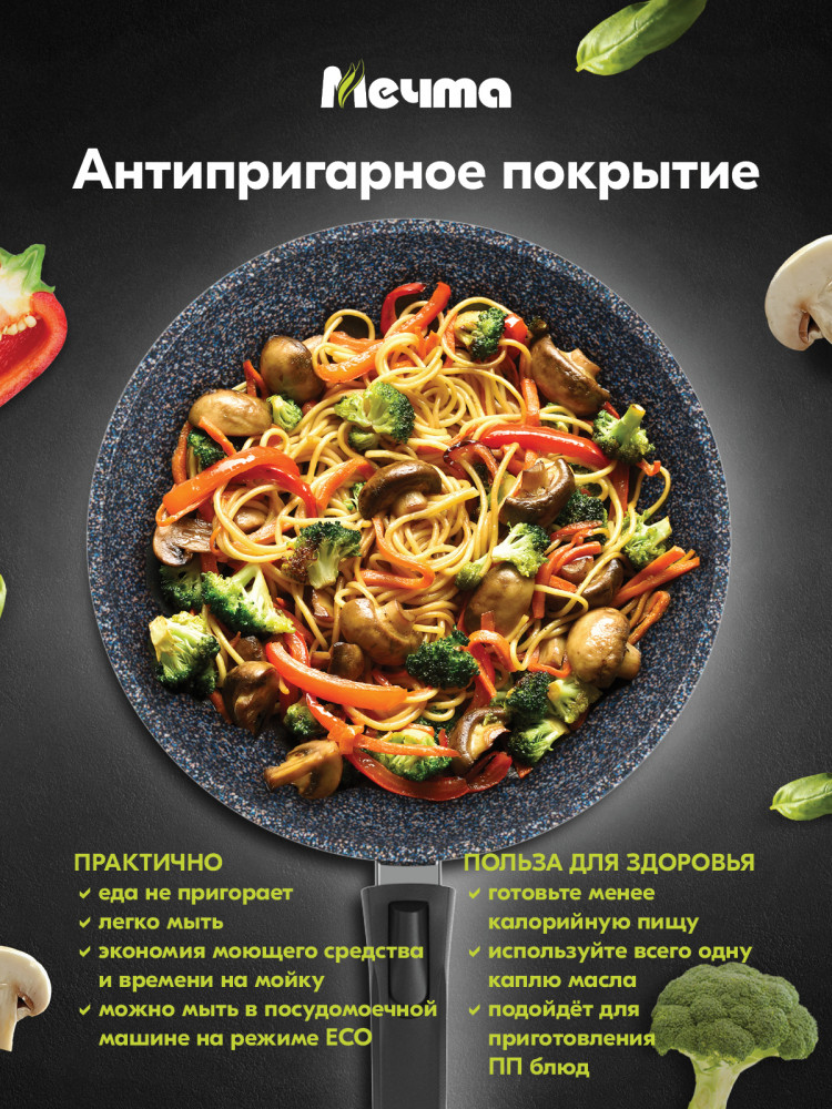 Мечта Сковорода-вок со съемной ручкой «Гранит Star»-20% +173