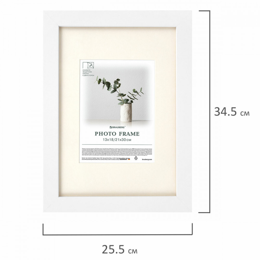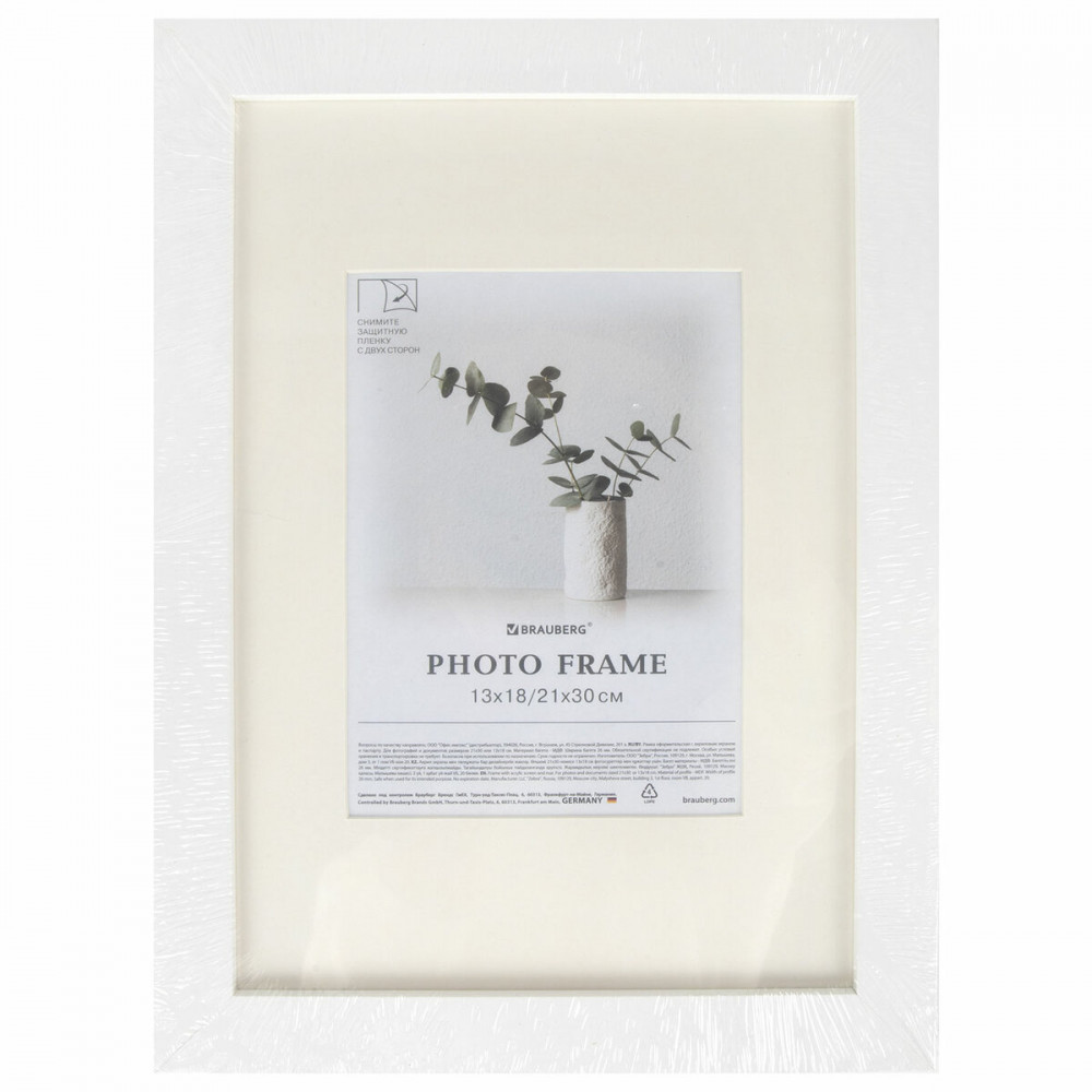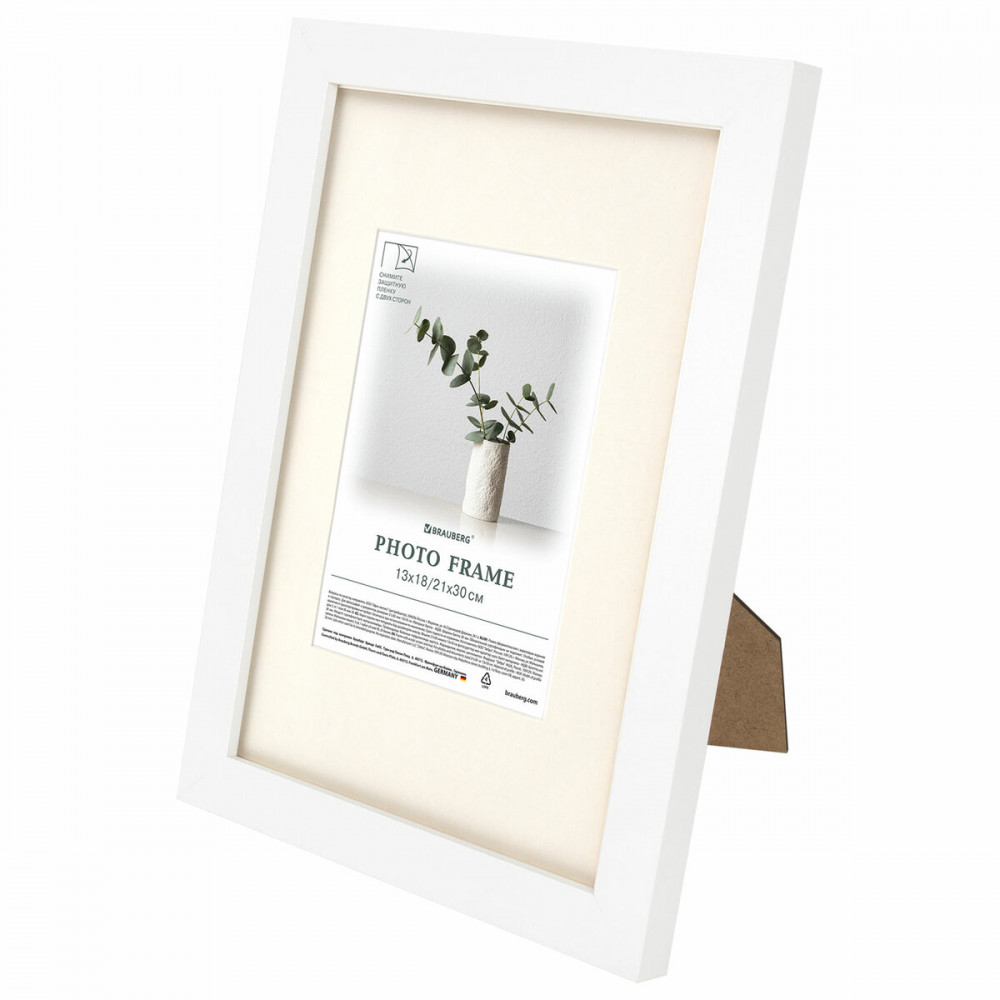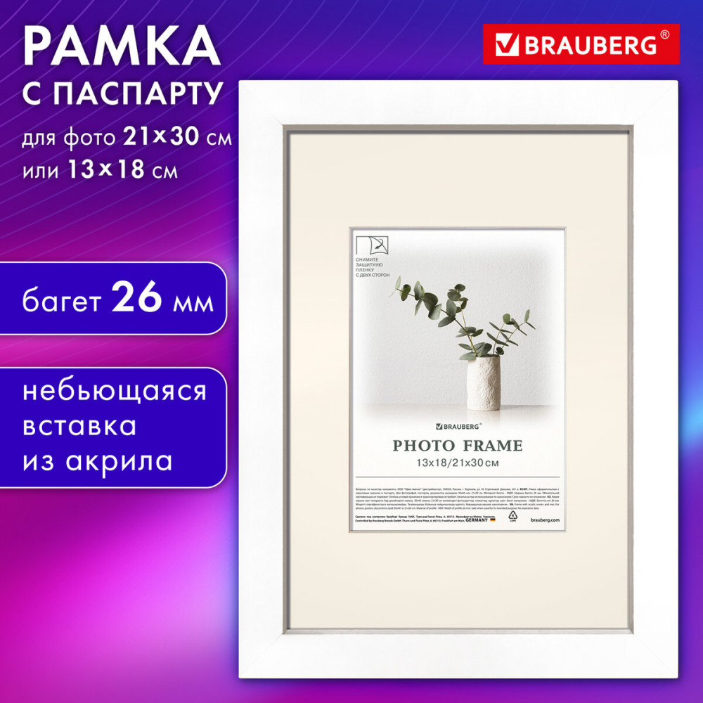 Рамка для фото BRAUBERG «Ambassador», выполненная в универсальном белом багете с изюминкой в виде паспарту, идеально впишется как в классический, так и в современный интерьер. Рамка выполнена из МДФ и предназначена для фотографий размером 13 × 18 см (если использовать паспарту) или для фотографий, сертификатов, дипломов стандартного размера A4 21 × 30 см (если убрать паспарту). У рамки имеется возможность вертикального и горизонтального подвеса, а также имеется подставка для установки рамки на столе.