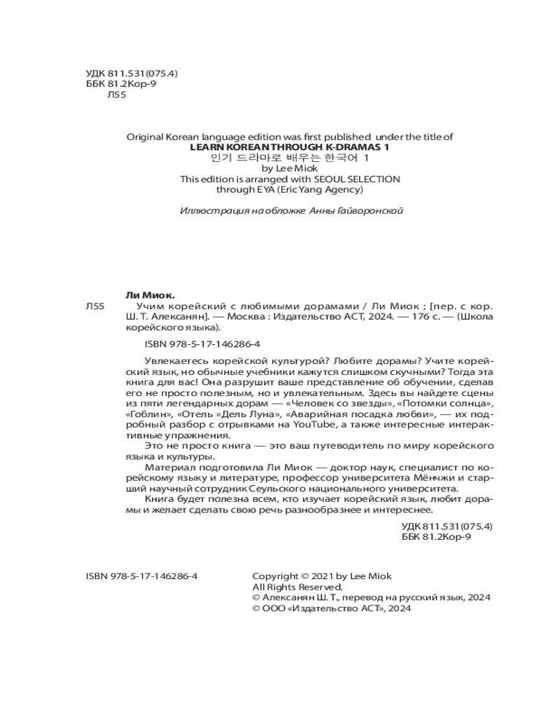 💳 Оплатить за товар можно при получении 🇰🇿 Есть бесплатная доставка по Казахстану от 1 дня 🎁 Копите бонусы с каждой покупки Серия: Школа корейского языка Увлекаетесь корейской культурой? Любите дорамы? Учите корейский язык, но обычные учебники кажутся слишком скучными? Тогда эта книга для вас! Она разрушит ваше представление об обучении, сделав его не просто полезным, но и увлекательным. Здесь вы найдете сцены из пяти легендарных дорам — «Человек со звезды», «Потомки солнца», «Гоблин», «Отель «Дель Луна», «Аварийная посадка любви», — их подробный разбор с отрывками на YouTube, а также интересные интерактивные упражнения. |