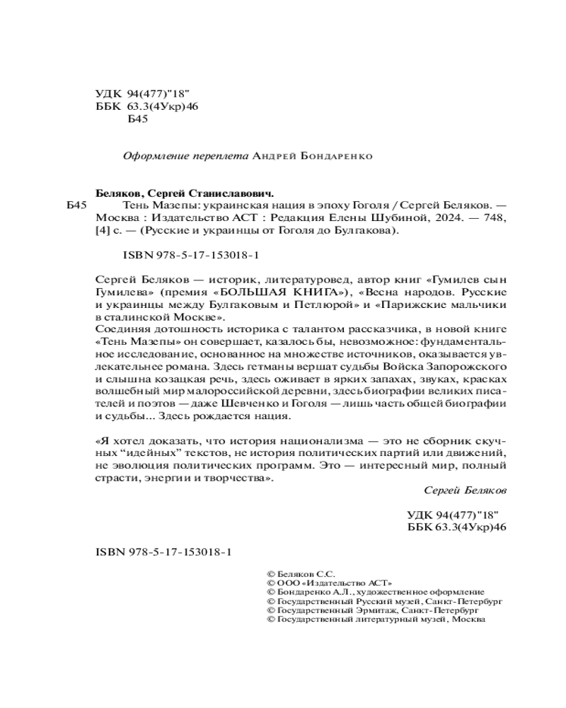 Тень Мазепы. Украинская нация в эпоху Гоголя+309