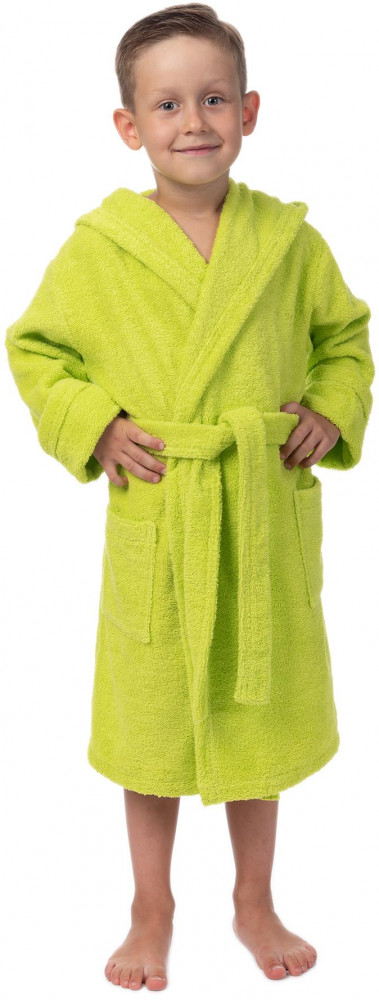 Детский халат выполнен в яркой цветовой палитре. Изделие средней плотности, легкие и не сковывают движения, оставаясь при этом мягкими. Модель с капюшоном удобна в качестве домашней одежды и после банных процедур. Накладные кармашки халата так нравятся детям! Размерный ряд представлен на любой возраст — от малышей до подростков.