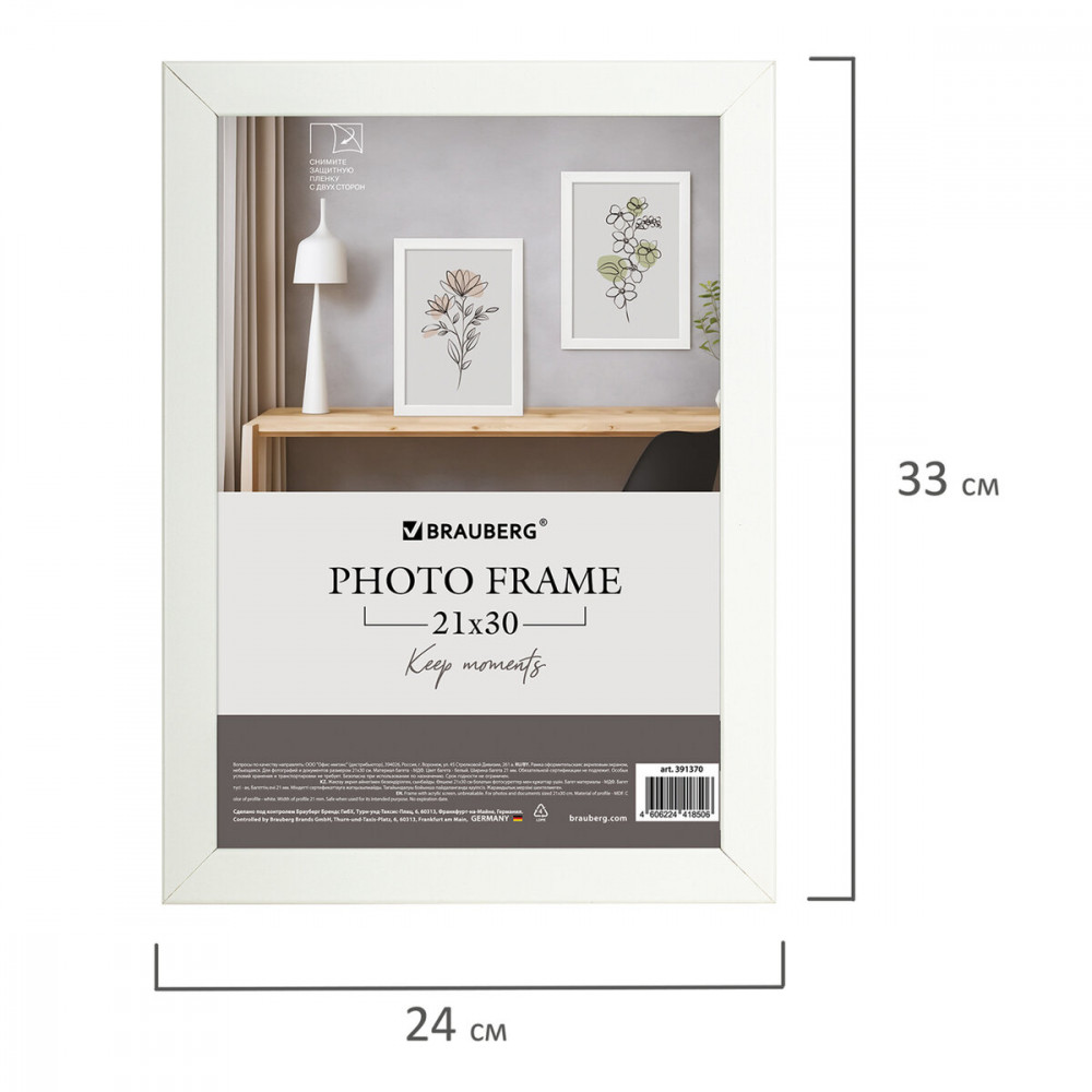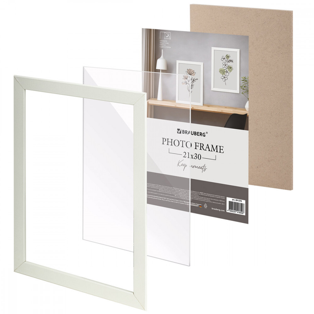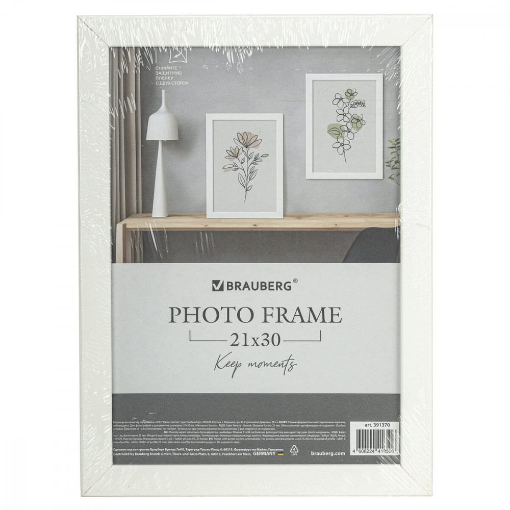 Рамка BRAUBERG «Idea» в стиле IKEA для фотографий, дипломов, сертификатов, грамот и других ценных документов будет гармонично смотреться как в офисном, так и в домашнем интерьере, в салонах, магазинах, на предприятиях и в других учреждениях. Рамка стандартного формата А4 (21 × 30 см) выполнена из МДФ в универсальном белом цвете, за счет чего отлично впишется как в домашний, так и в деловой интерьер. Имеется возможность вертикального и горизонтального подвеса, а также имеется подставка для установки рамки на столе.