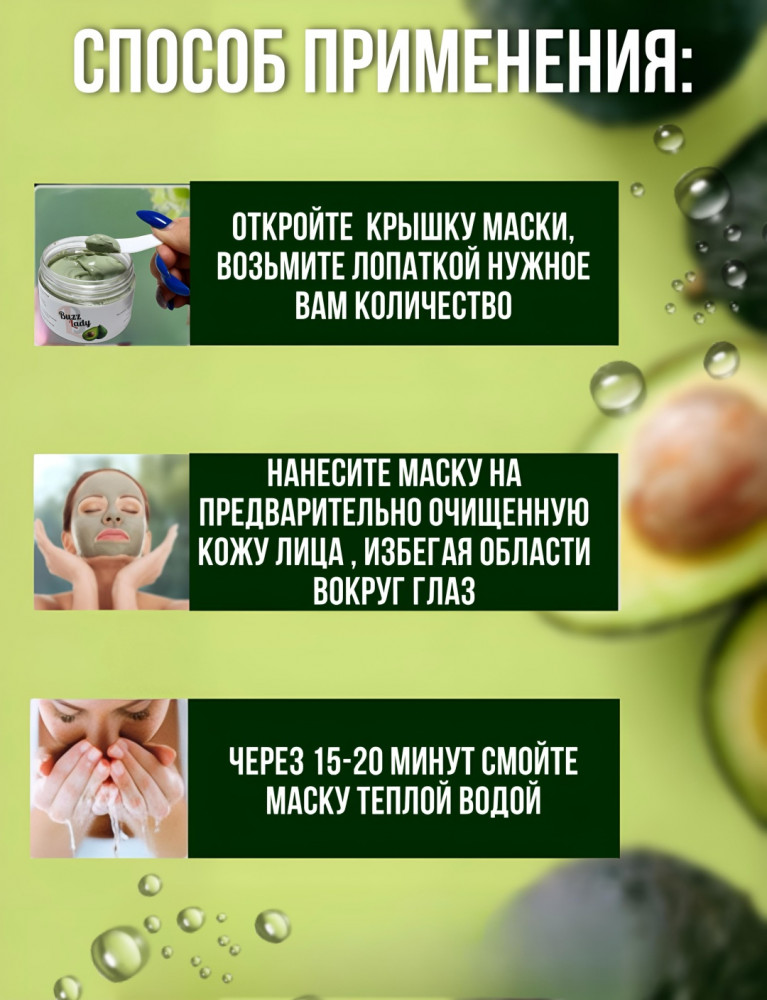 Buzz Lady Маска для лица глиняная с авокадо