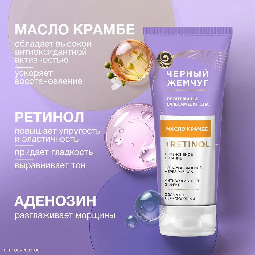 Черный жемчуг Бальзам для тела питательныйВ данный момент этот товар отсутствует в продаже. Возможно, у нас найдется аналогичный или похожий товар здесь. Бальзам для тела питательный — новинка от бренда Черный Жемчуг, созданная специально для качественного ухода за кожей тела и заметного омоложения. Средство дарит питание и увлажнение для тела, оказывает антивозрастное действие, делает кожу шелковистой и эластичной. Управляйте возрастными изменениями и наслаждайтесь красивой кожей вместе с бальзамом для тела. Ретинол участвует в восстановлении коллагенового матрикса и ускоряет обновление клеток кожи. Бальзам обладает приятной насыщенной текстурой, которая легко распределяется по телу и быстро впитывается. |