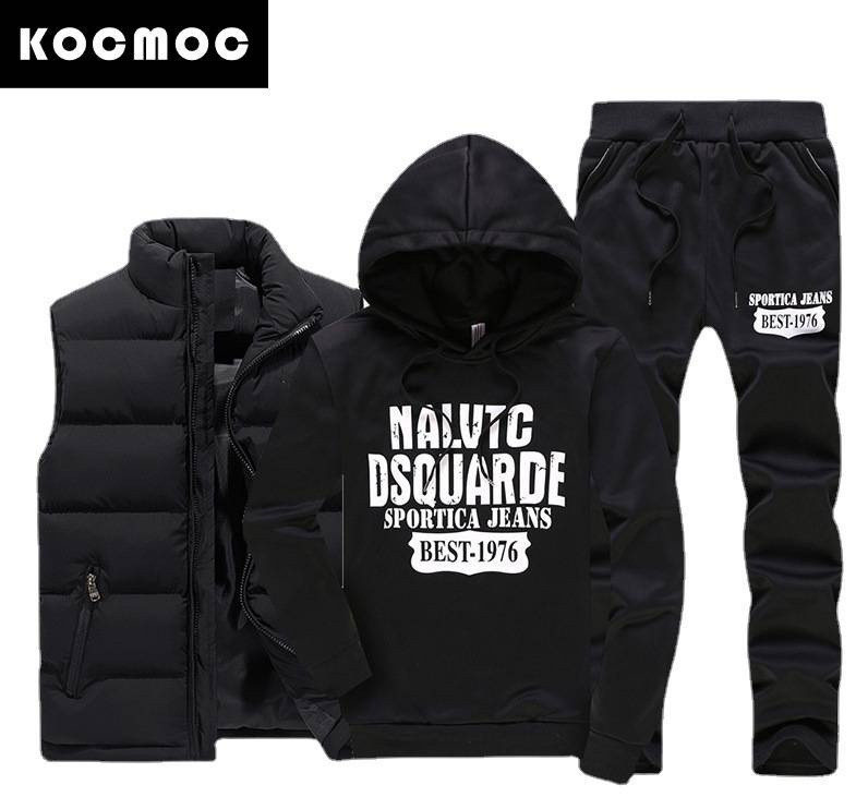 Комплект из трех предметов для мужчин: худи с капюшоном и буквенным принтом, жилет и брюки — это универсальный зимний комплект, который сочетает комфорт и стиль. Этот комплект не только функционален и стильный, но и подходит для различных зимних активностей, обеспечивая тепло и элегантность в любых условиях.