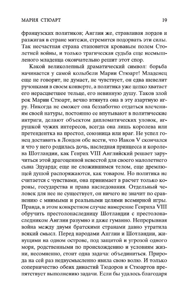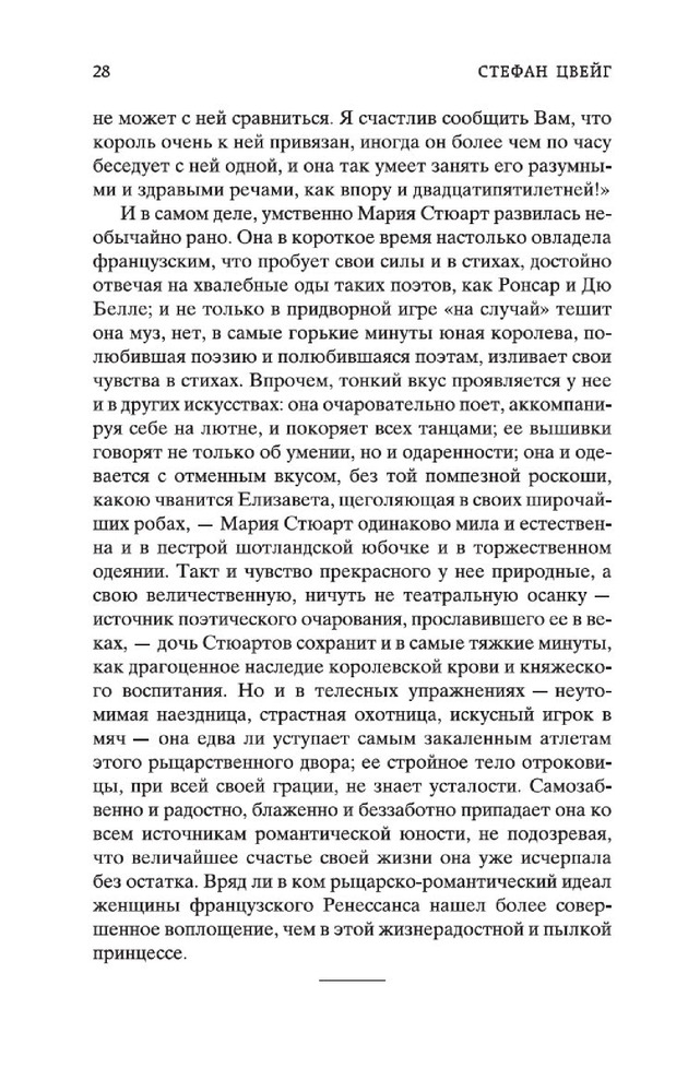 "Мария Стюарт" по своему стилю, отличается от новелл. Стефан Цвейг подошёл к биографии королевы со скрупулёзностью историка. Видно, что это серьёзное произведение, а не окололитературные упражнения. Советую всем, кто увлекается историей.