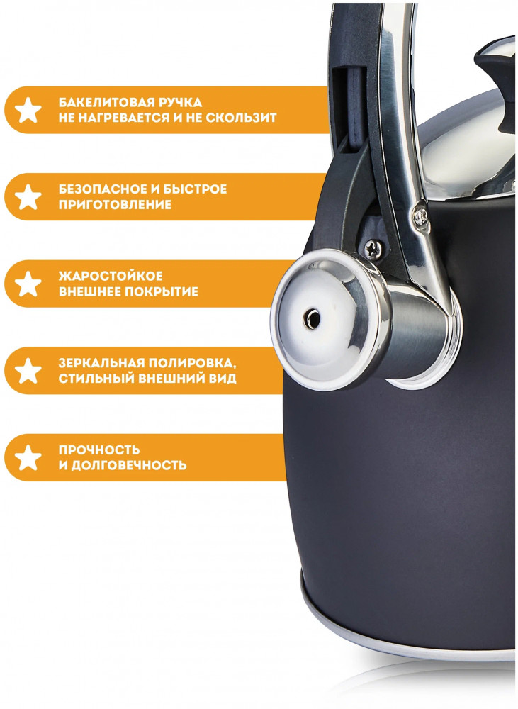 💳 Оплатить за товар можно при получении 🇰🇿 Есть бесплатная доставка по Казахстану от 1 дня 🎁 Копите бонусы с каждой покупки Серия: Tea Чайник Regent 93-TEA-31 со свистком объемом 3 литра представляет собой стильное и функциональное решение для вашей кухни. Изготовленный из нержавеющей стали, этот чайник обеспечивает долговечность и надежность в использовании. Чайник оснащен свистком, который оповестит вас о закипании воды. Это позволит вам не пропустить момент, когда вода достигнет нужной температуры для приготовления вашего любимого напитка. Ручка чайника изготовлена из пластика, что делает его удобным для использования и безопасным для ваших рук. Чайник можно мыть в посудомоечной машине, что значительно упрощает процесс уборки на кухне. |