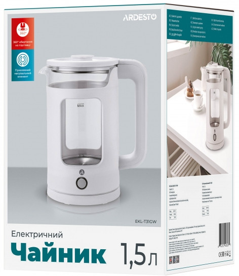 Ardesto Электрочайник EKL-T31GWудобно пользоваться крышка 90° дизайн не шумный В данный момент этот товар отсутствует в продаже. Возможно, у нас найдется аналогичный или похожий товар здесь. Электрический чайник EKL-T31GW в корпусе из прочного пластика и термостойкого стекла. Мощность устройства 350 Вт. Оснащен скрытым нагревательным элементом. Предусмотрена световая индикация, автоматическое выключение после закипания и в случае нехватки воды. В комплекте есть подставка, обеспечивающая вращение электрочайника на 360°. |
