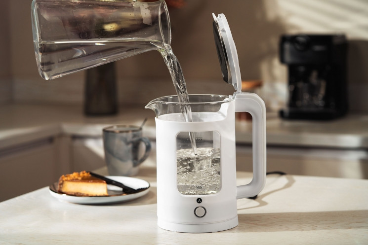 Отличный чайник. Все видно. Крышка открывается под углом 90 градусов. Очень удобно пользоваться. Красивый дизайн. Пользуюсь уже несколько месяцев. Все отлично.