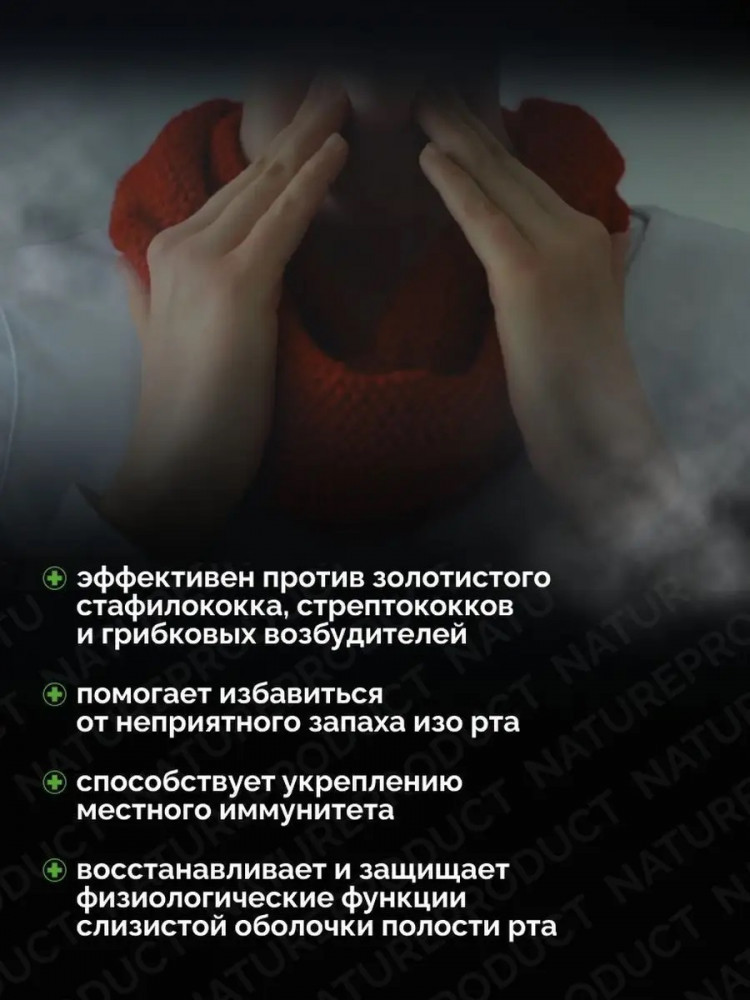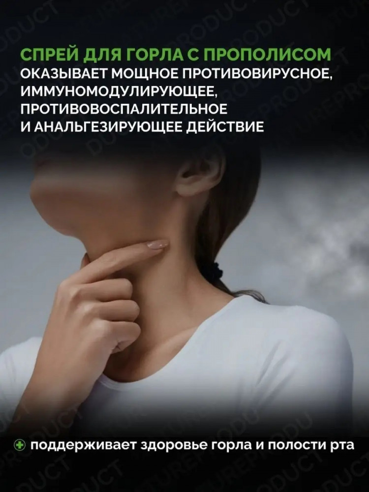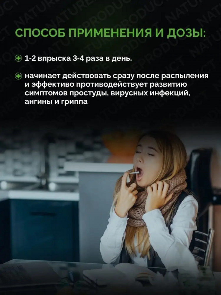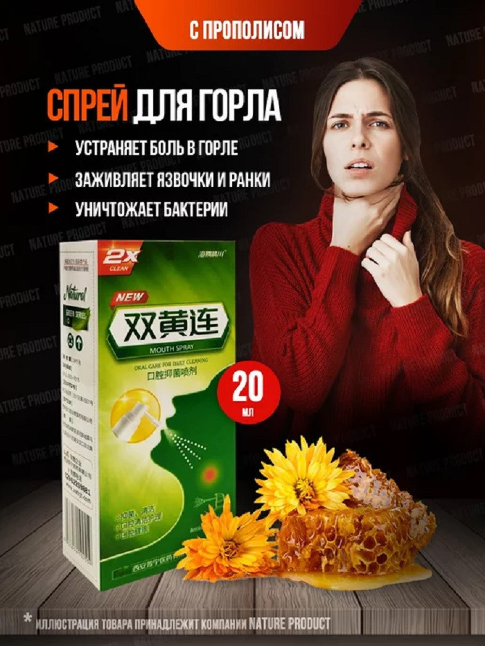 Спрей для горла с прополисом «Шуан Хуан Лянь»В данный момент этот товар отсутствует в продаже. Возможно, у нас найдется аналогичный или похожий товар здесь. Спрей для горла с прополисом оказывает мощное противовирусное, иммуномодулирующее, противовоспалительное и анальгезирующее действие. Поддерживает здоровье горла и полости рта. Спрей от горла снимает симптомы ангины и ОРВИ, уничтожает бактерии и облегчает острую боль в горле. Средство от боли в горле орошает и промывает гортань, миндалины и ротовую полость. Удаляет патологическое содержимое с поверхности слизистой оболочки, заживляет язвочки и ранки, сокращает продолжительность респираторных заболеваний и препятствует их распространению — аптечка первой помощи. За небольшой промежуток времени средство поможет снять воспаление, затруднение при глотании, першение, раздражение и боль в горле. Продукт начинает действовать сразу после распыления и эффективно противодействует развитию симптомов простуды, вирусных инфекций, ангины и гриппа. |