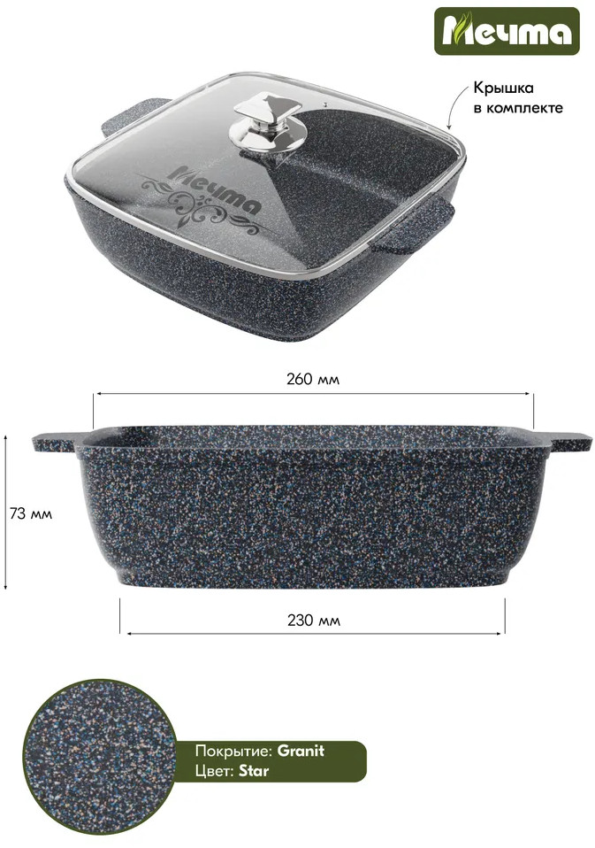 Мечта Жаровня с крышкой «Гранит Star»