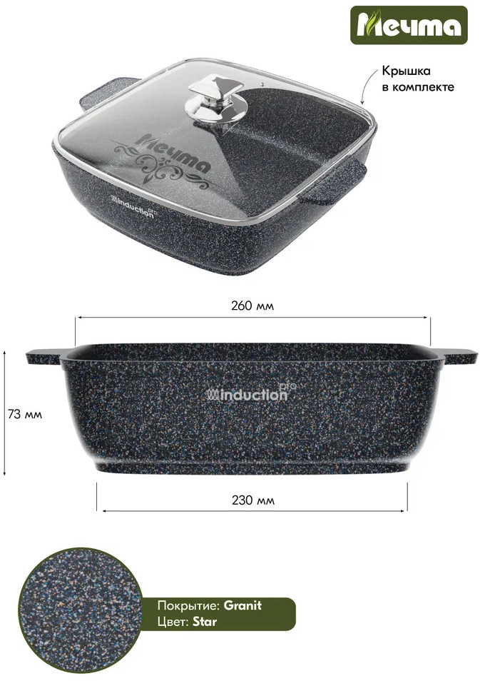 Мечта Жаровня с крышкой «Гранит star Induction»