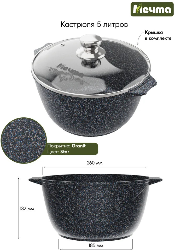 Мечта Кастрюля с крышкой «Гранит Star»