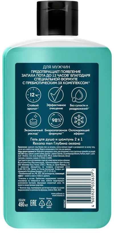 Rexona Гель для душа и шампунь мужской «Глубина океана»