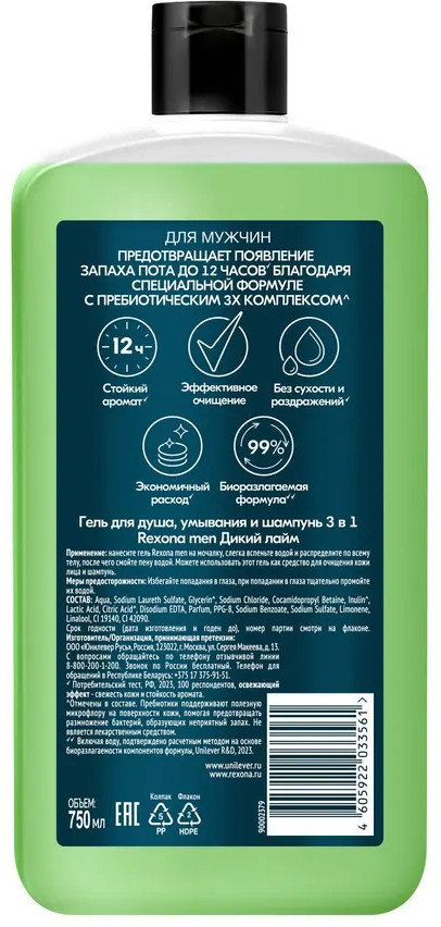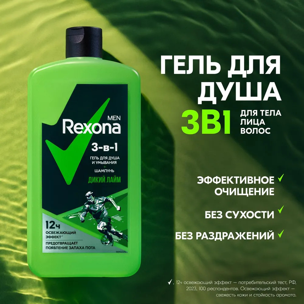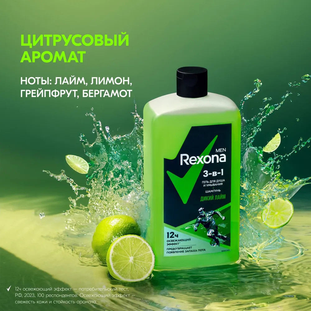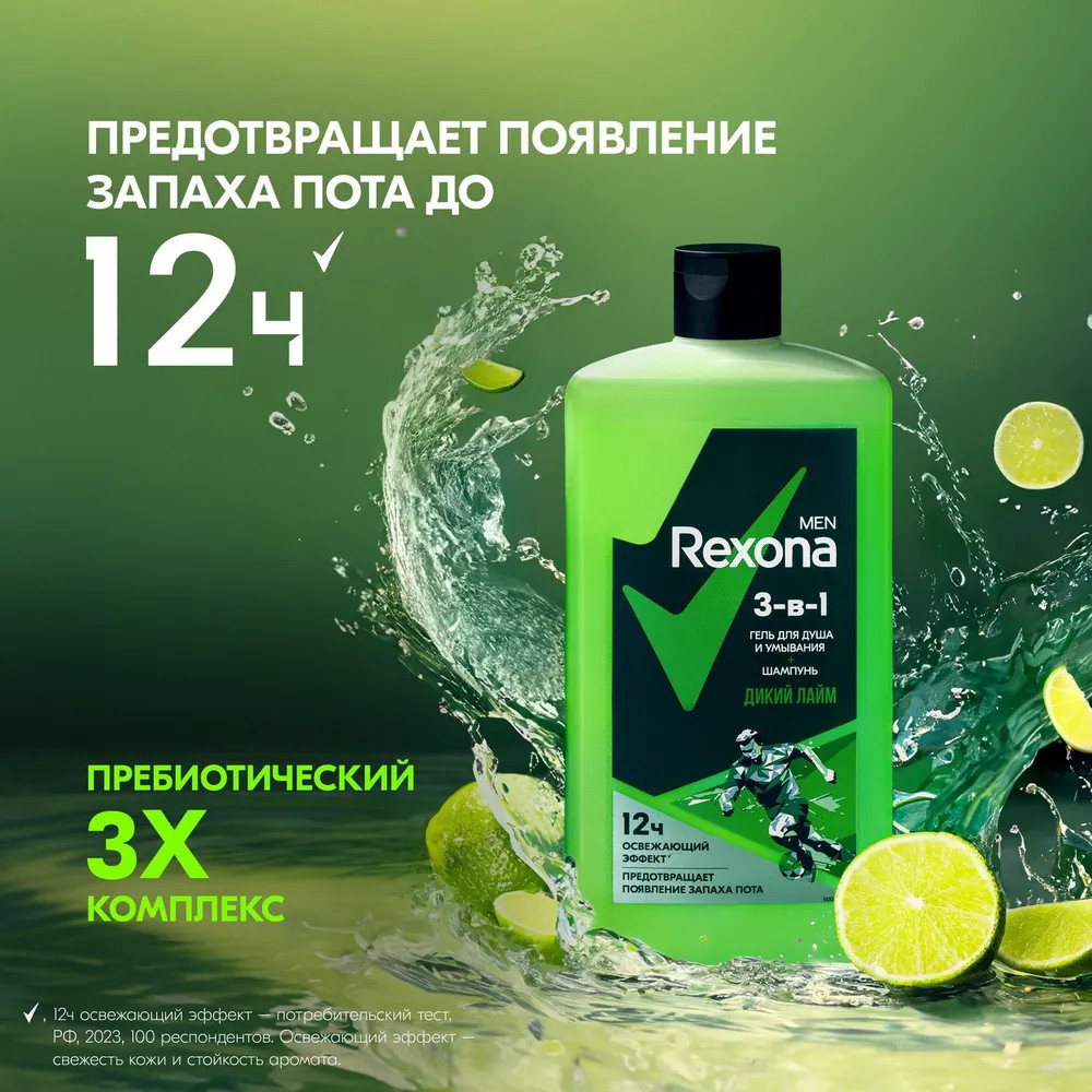 Rexona Гель для душа 3-в-1 «Дикий лайм»