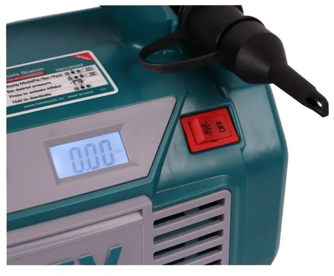 Total Компрессор воздушный автоматический литий-ионныйВ данный момент этот товар отсутствует в продаже. Возможно, у нас найдется аналогичный или похожий товар здесь. TACLI2002 — это компактный и легкий аккумуляторный автокомпрессор от бренда Total Tools. У данного воздушного компрессора имеется авто-стоп при выбранном давлении. Питание от автомобиля или Li-Ion батареи. Он работает от литий-ионного аккумулятора 20 В, что обеспечивает высокую мощность и производительность. Компрессор имеет максимальное давление 11 бар (160 PSI), что позволяет быстро и эффективно накачать шины автомобиля, мотоцикла, велосипеда и других видов транспорта. Встроенный манометр позволяет точно контролировать давление в шинах. TACLI2002 оснащен универсальным портом для подключения различных типов ниппелей, что делает его универсальным и удобным в использовании. |