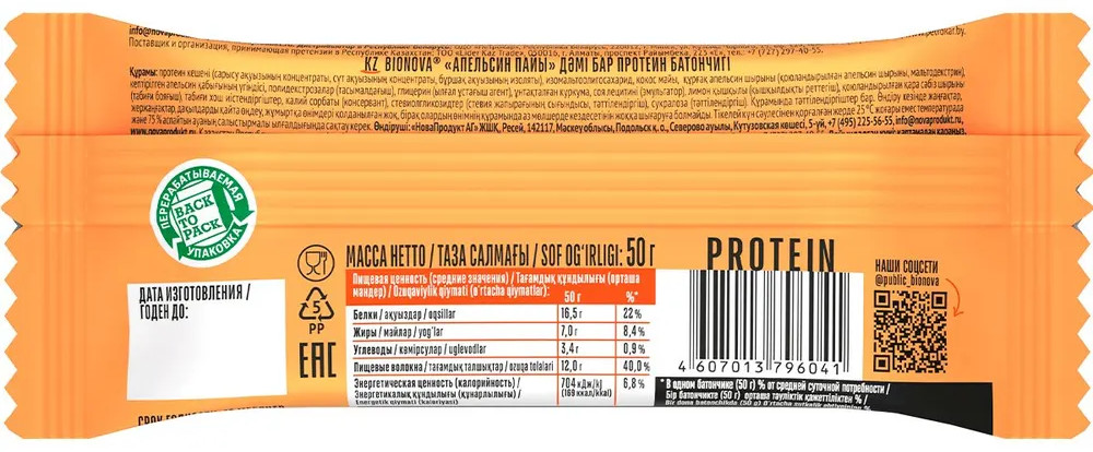 Bionova Батончик протеиновый «Апельсиновый пай»