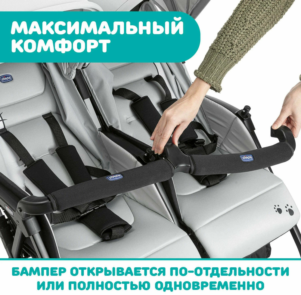 Двойная легкость, двойной комфорт Chicco Ohlala Twin — это новая ультралегкая и сверхкомпактная коляска для близнецов от Chicco. Прогулочная коляска Chicco Ohlala Twin — надежная, практичная, а самое главное легкая. Изготовлена коляска из приятных, прочных тканей которые позволяют малышу всегда чувствовать себя комфортно. Также для безопасности ребенка предусмотрены 5-ти точечные ремни. Качественная ткань не вызывает дискомфорта в жаркую погоду и не раздражает нежную кожу ребенка. Благодаря наклоняемой до горизонтального положения спинки коляски на нее можно установить люльку-переноску, для того чтобы прогулки стали более комфортными, особенно в холодное время года.