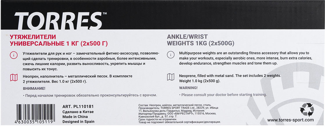 TORRES Набор утяжелителей универсальных
