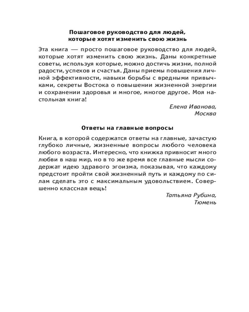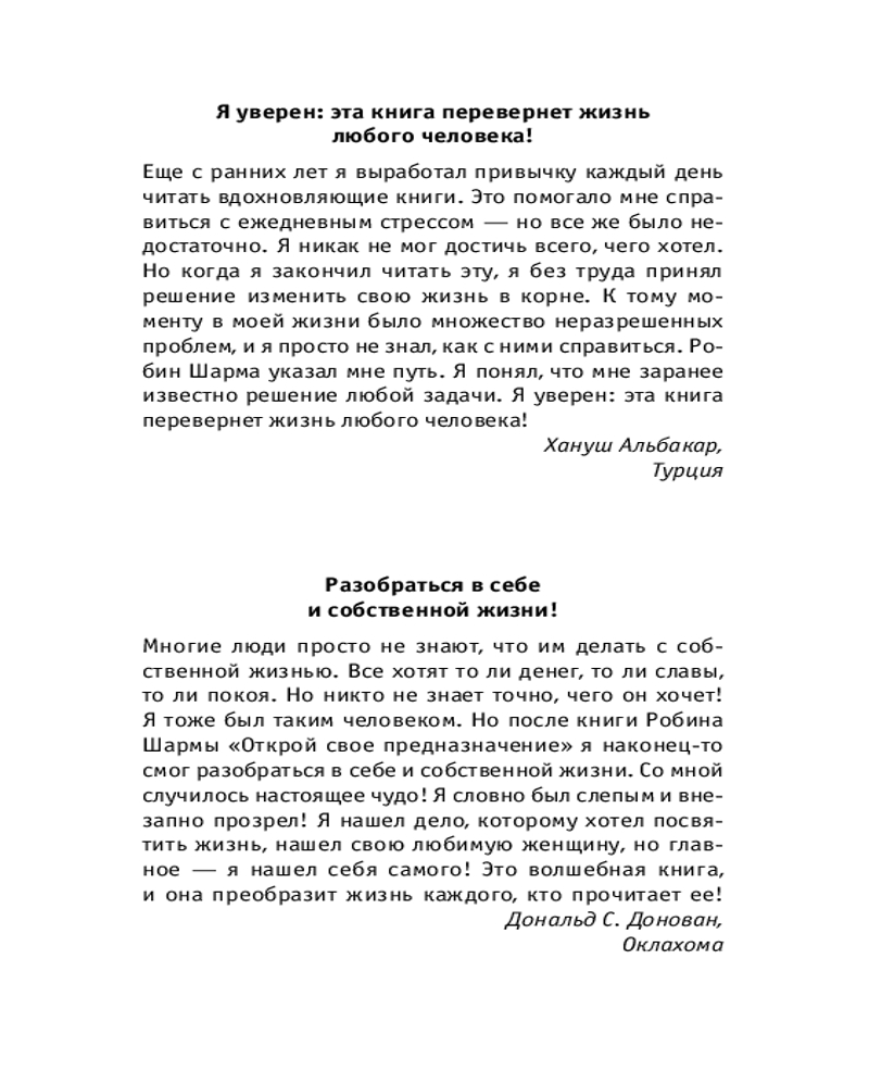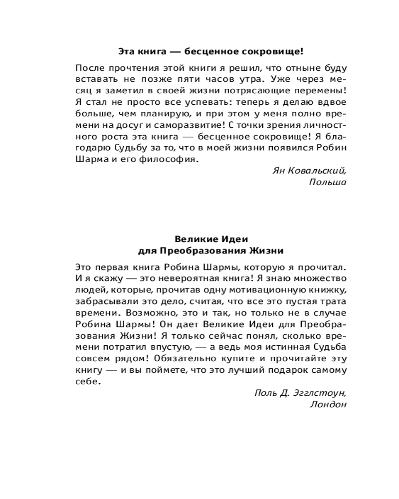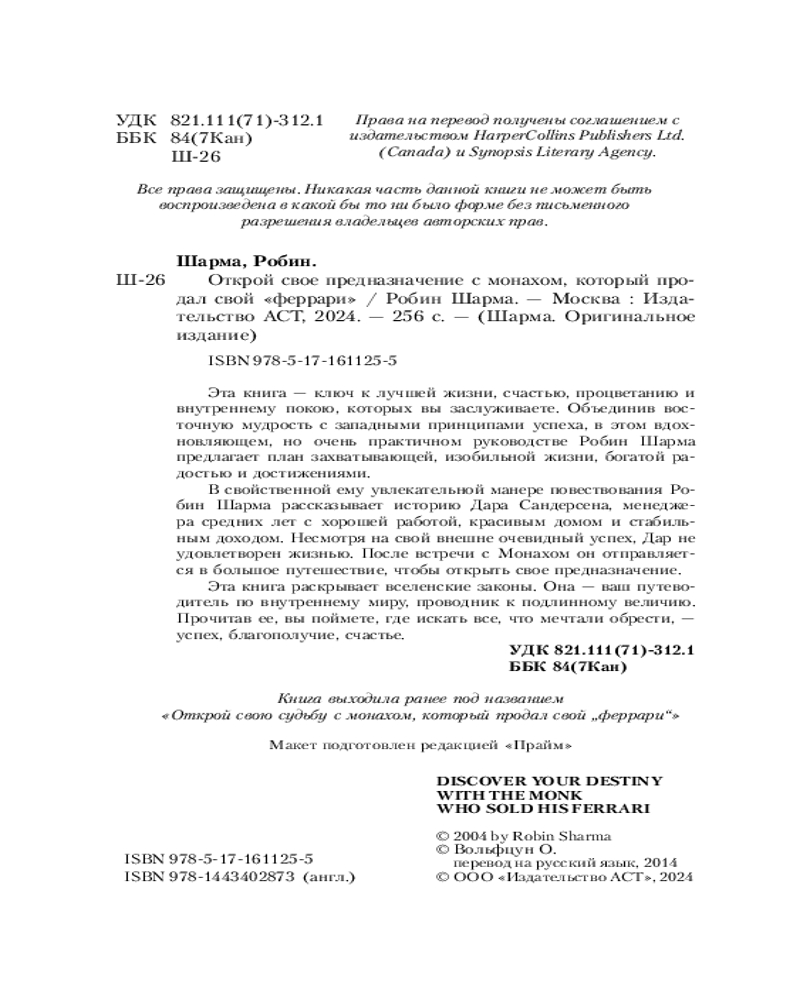 💳 Оплатить за товар можно при получении 🇰🇿 Есть бесплатная доставка по Казахстану от 1 дня 🎁 Копите бонусы с каждой покупки Серия: Шарма. Оригинальное издание Долгожданное новое издание бестселлера Робина Шармы — одного из самых знаменитых учителей современности в области личной эффективности. Эта книга — ключ к лучшей жизни, счастью, процветанию и внутреннему покою, которых вы заслуживаете. Объединив восточную мудрость с западными принципами успеха, в этом вдохновляющем, но очень практичном руководстве Робин Шарма предлагает план захватывающей, изобильной жизни, богатой радостью и достижениями. |