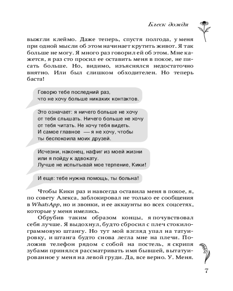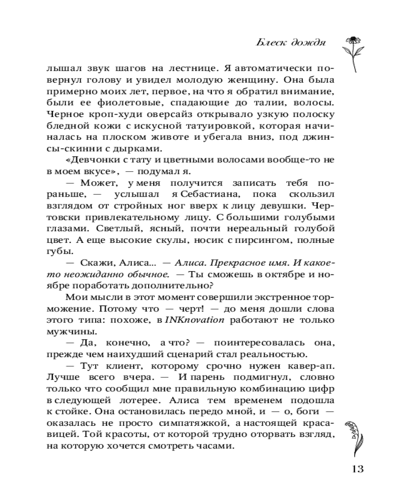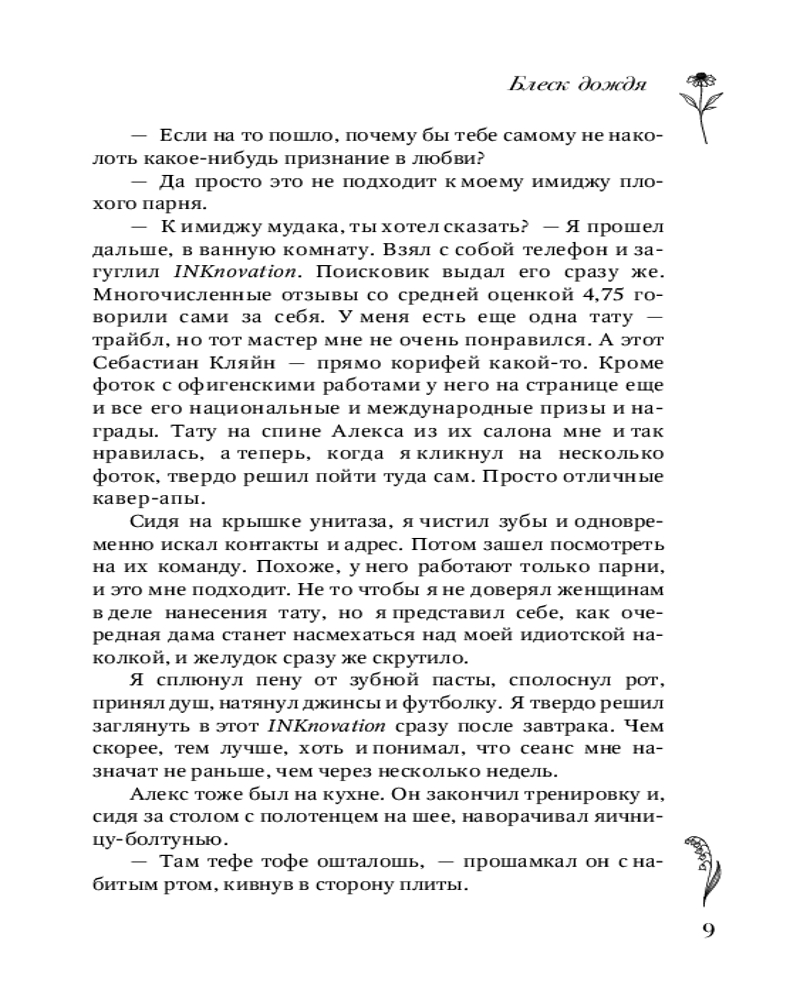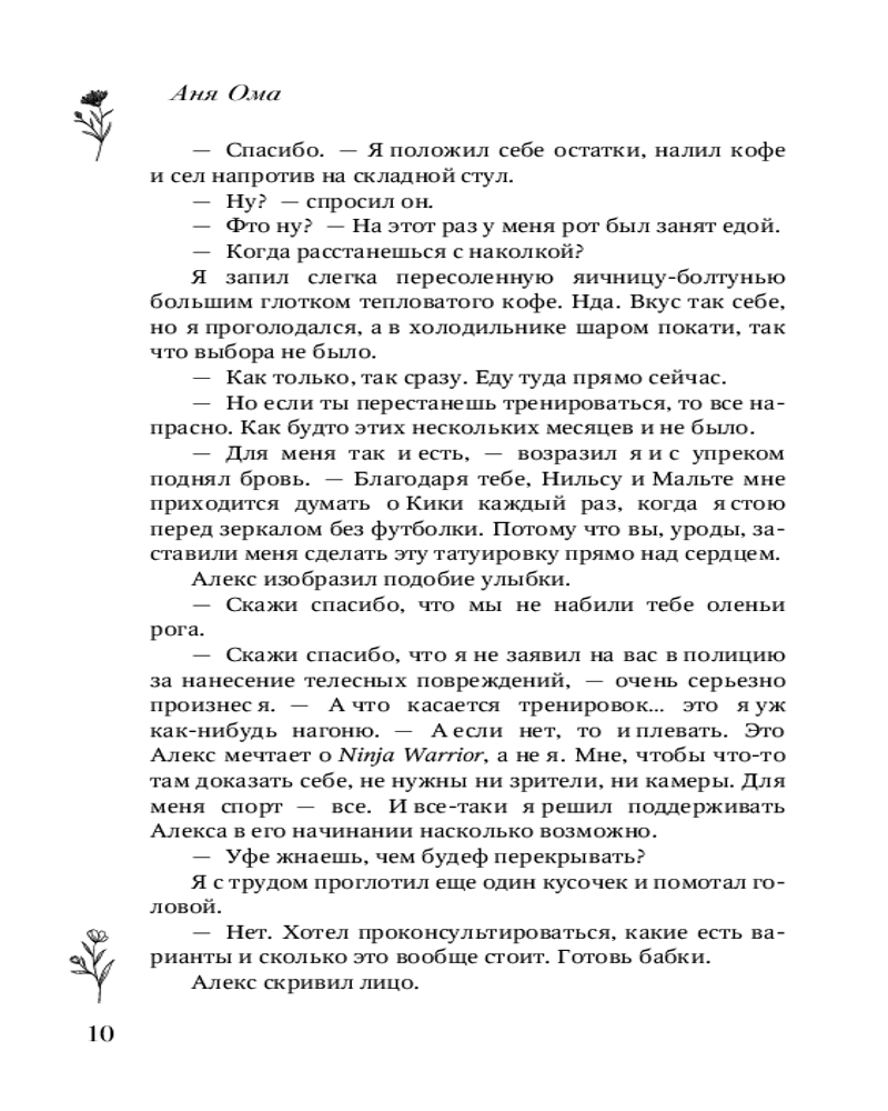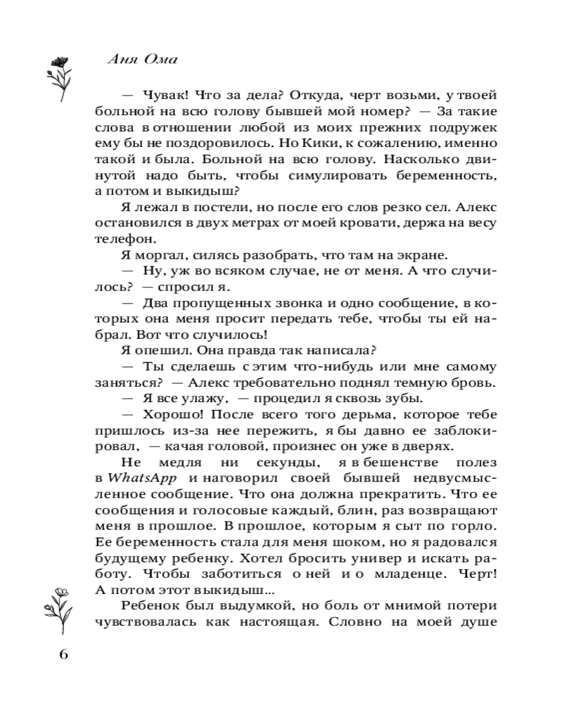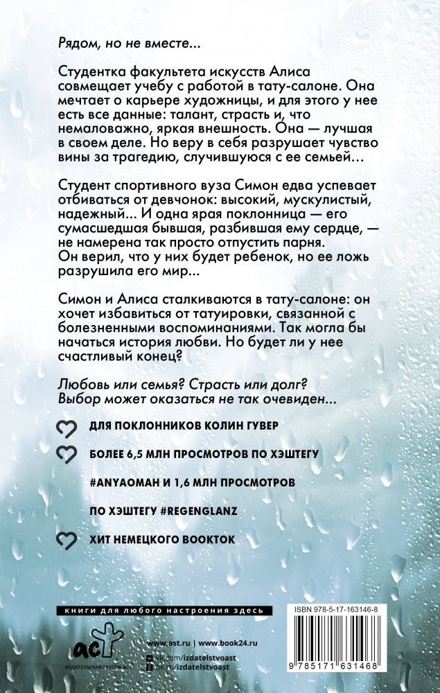 💳 Оплатить за товар можно при получении 🇰🇿 Есть бесплатная доставка по Казахстану от 1 дня 🎁 Копите бонусы с каждой покупки Серия: Любовь с первых строк. Книги Ани Омы Рядом, но не вместе... Студентка факультета искусств Алиса совмещает учебу с работой в тату-салоне. Она мечтает о карьере художницы, и для этого у нее есть все данные: талант, страсть и, что немаловажно, яркая внешность. Она — лучшая в своем деле. Но веру в себя разрушает чувство вины за трагедию, случившуюся с ее семьей... Студент спортивного вуза Симон едва успевает отбиваться от девчонок: высокий, мускулистый, надежный... И одна ярая поклонница — его сумасшедшая бывшая, разбившая ему сердце, — не намерена так просто отпустить парня. Он верил, что у них будет ребенок, но ее ложь разрушила его мир... |