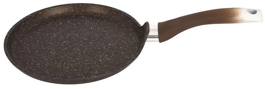Красивая и удобная посуда линии Мраморная спокойных тонов создаст уютную атмосферу на кухне. Немаловажным является и широкий ассортимент, благодаря чему в рамках единой коллекции можно собрать свой собственный набор посуды. Блинная сковорода — настоящая находка для каждой хозяйки: подойдет не только для жарки блинов, но и для приготовления яичницы, оладий и других вкусных блюд.