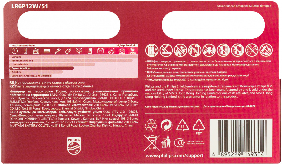 💳 Оплатить за товар можно при получении 🇰🇿 Есть бесплатная доставка по Казахстану от 1 дня 🎁 Копите бонусы с каждой покупки Алкалиновая (щелочная) батарейка типа AA LR6/MN 1500 (пальчиковая). Продолжительное время работы энергоемких устройств. Современные электронные устройства, такие как электронные игрушки и портативные аудиоплееры, требуют все больше энергии. Для более долгой работы таких устройств используйте щелочные батареи Philips «Power». |