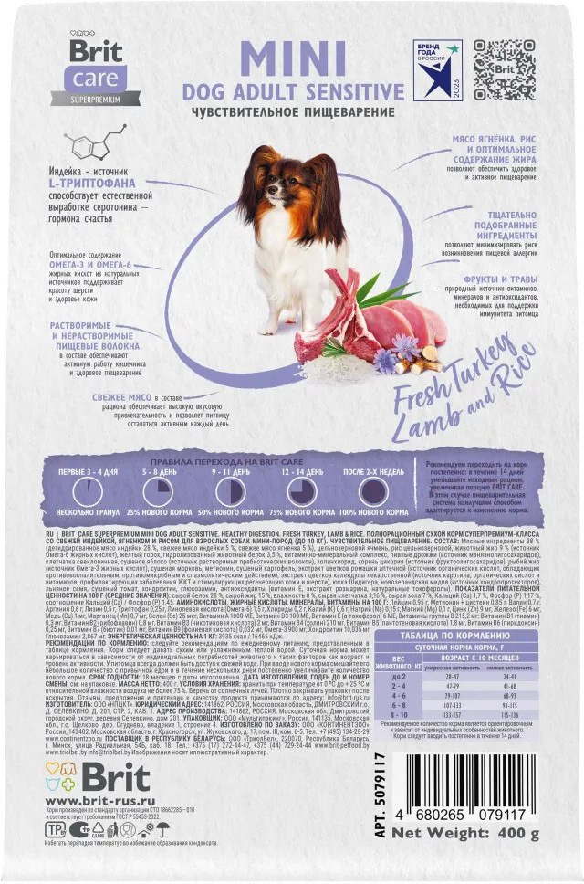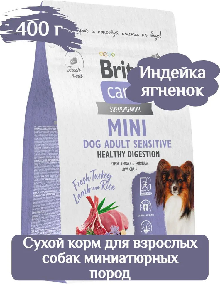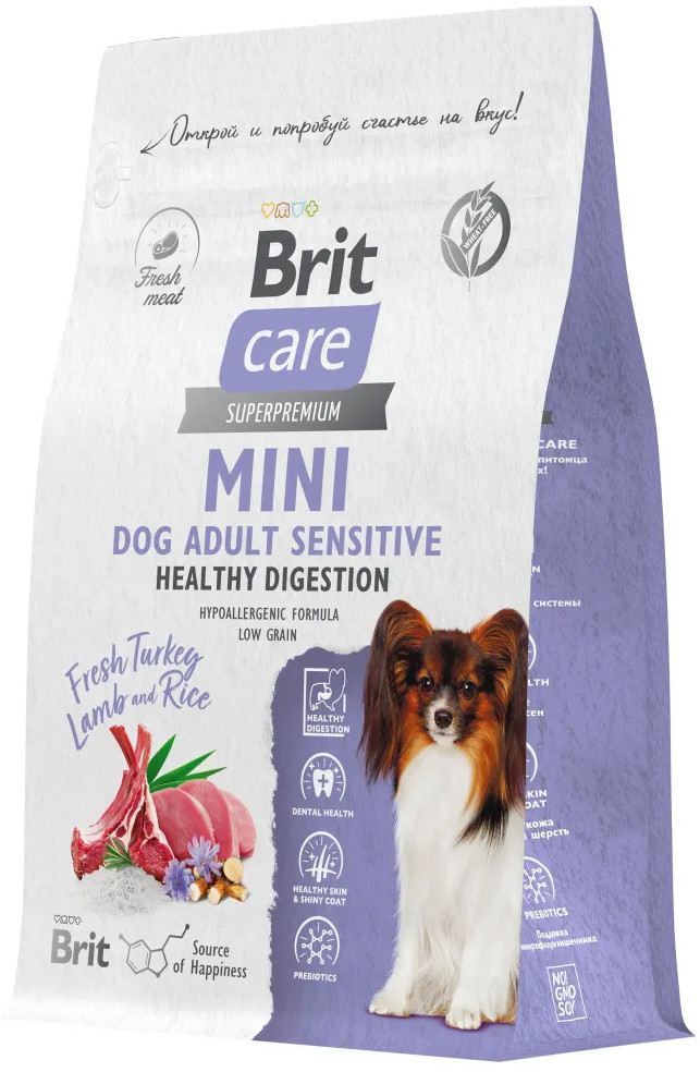 Brit Корм сухой для взрослых cобак мини пород с индейкой и ягненком «Mini Adult Sensitive. Healthy Digestion»