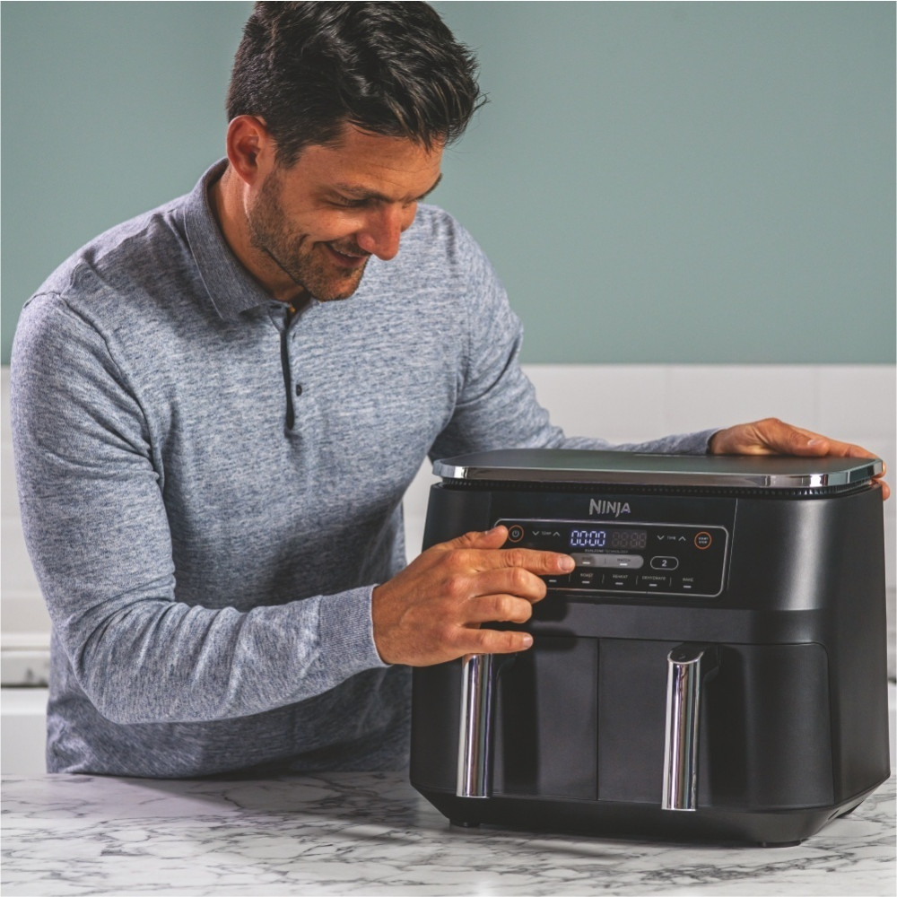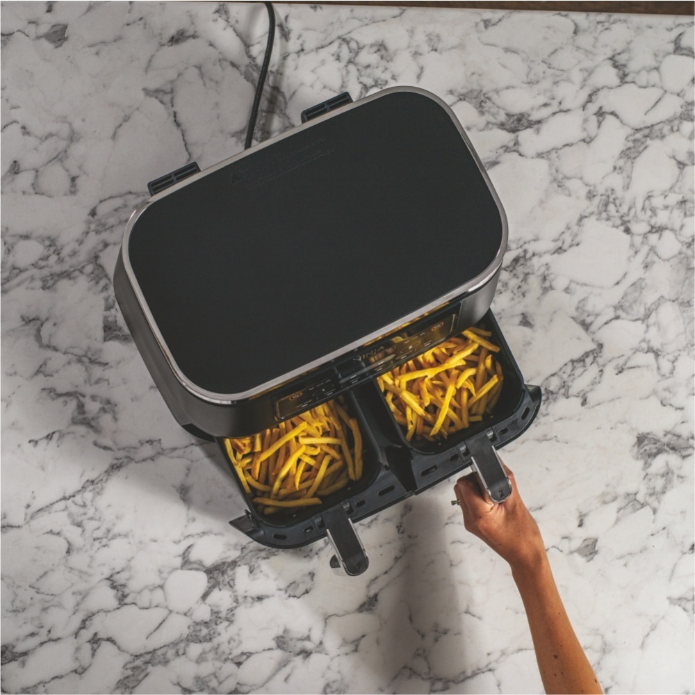 Готовьте вдвое больше блюд за один раз с мультипечью Ninja Air Fryer Dual Zone AF300EU. Две зоны приготовления дают вам вдвое больше свободы в создании шедевров. Готовьте отдельно разные блюда с универсальными функциями, получите максимум преимуществ от инновационного аэрофритюра с минимумом масла и облегчите свой быт с мультипечью Ninja!