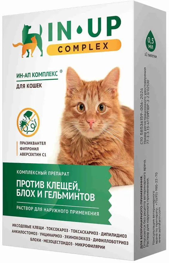 | Астрафарм Комплекс для кошек против блох, клещей, вшей, власоедов и гельминтов «IN-UP complex»+117 (бонусов)
