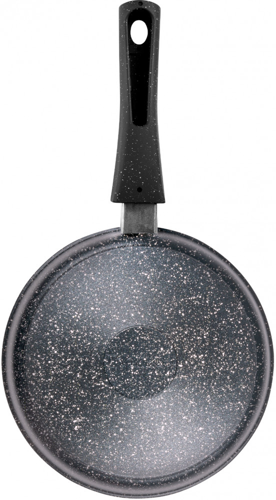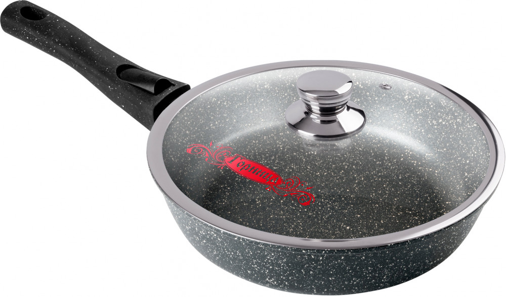 Литая алюминиевая сковорода с антипригарным покрытием — оригинальная посуда ТМ Горница, которая подходит для газовых, электрических, стеклокерамических плит. Необходима для приготовления различных продуктов: мяса, овощей, рыбы и т. д. Коллекция «Гранит» «мраморной посуды» с улучшенным четырёхслойным антипригарным покрытием. Дополнительный слой с мраморным эффектом увеличивает износостойкость и создаёт оттенок чёрного мрамора. Сковорода литая изготовлена из пищевого алюминия без канцерогенных веществ.