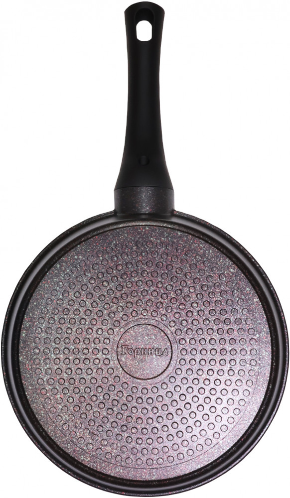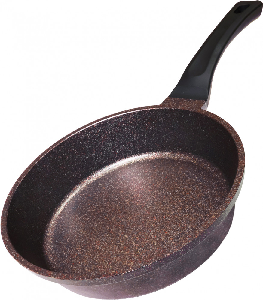 У изделия гладкая поверхность и современное износостойкое покрытие, благодаря чему можно готовить с минимальным количеством масла. За сковородой легко ухаживать: она легко моется вручную, также ее можно мыть в посудомоечной машине. Ручка из бакелита не нагревается, имеет бархатное покрытие soft-touch. Она не выскальзывает из рук и надежно закреплена, чтобы выдерживать вес сковороды, наполненной продуктами. Для продления срока службы изделия мы рекомендуем использовать деревянные, пластиковые и силиконовые кухонные аксессуары.