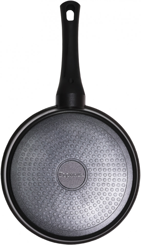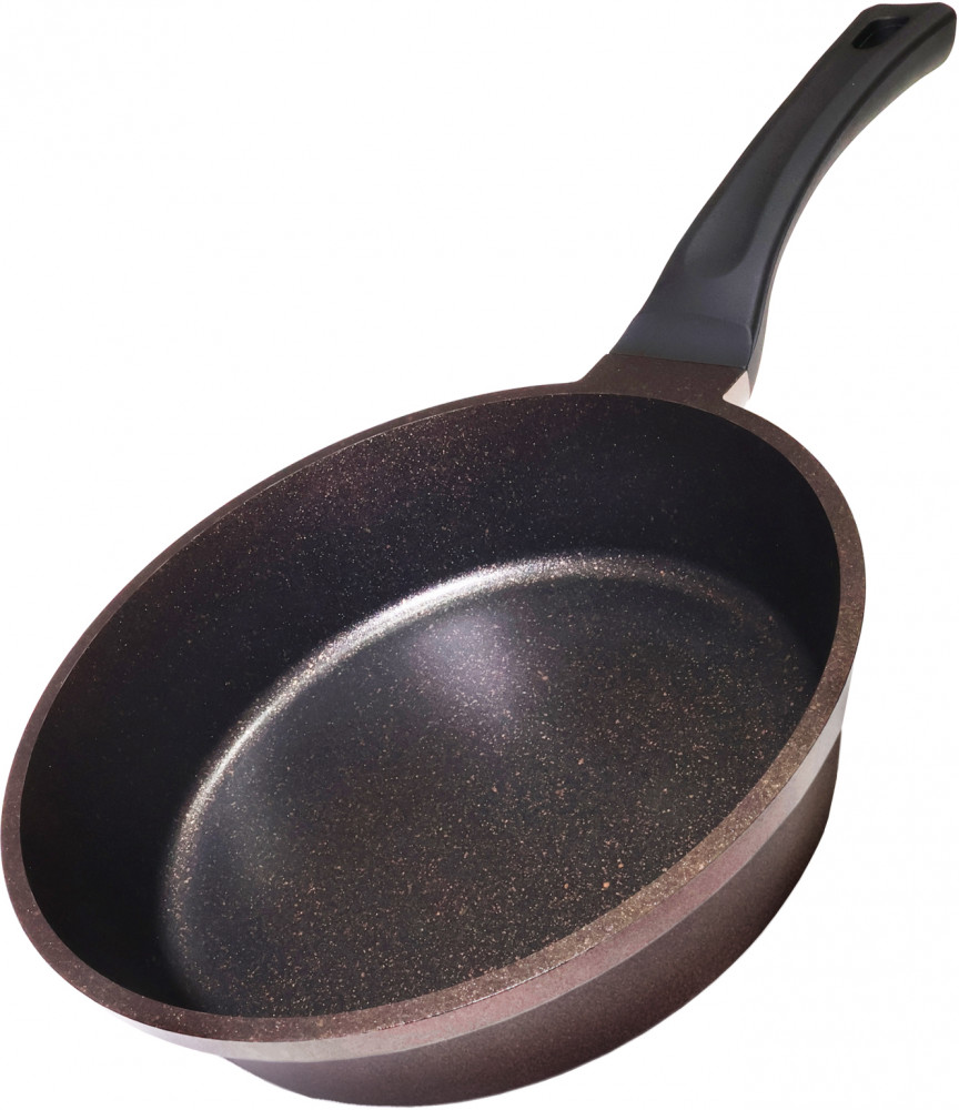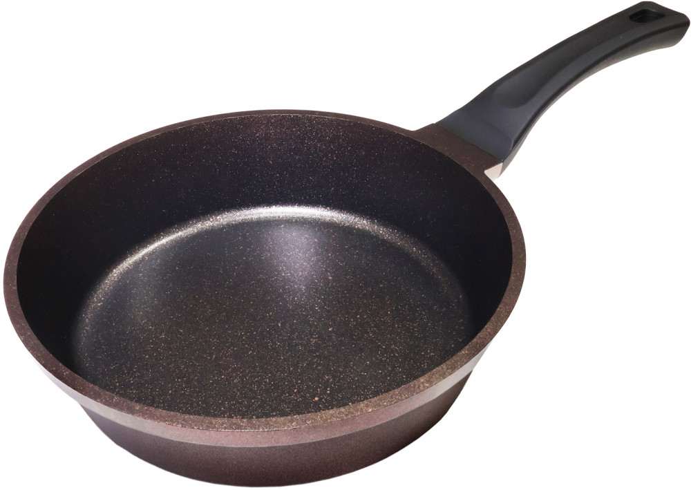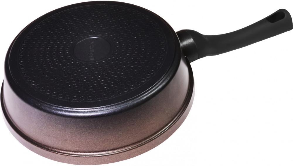 У изделия гладкая поверхность и современное износостойкое покрытие, благодаря чему можно готовить с минимальным количеством масла. За сковородой легко ухаживать: она легко моется вручную, также ее можно мыть в посудомоечной машине. Ручка из бакелита не нагревается, имеет бархатное покрытие soft-touch. Она не выскальзывает из рук и надежно закреплена, чтобы выдерживать вес сковороды, наполненной продуктами. Для продления срока службы изделия мы рекомендуем использовать деревянные, пластиковые и силиконовые кухонные аксессуары.
