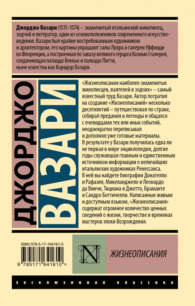 💳 Оплатить за товар можно при получении 🇰🇿 Есть бесплатная доставка по Казахстану от 1 дня 🎁 Копите бонусы с каждой покупки Серия: Эксклюзивная классика «Жизнеописания наиболее знаменитых живописцев, ваятелей и зодчих» — самый известный труд Вазари. Автор потратил на создание «Жизнеописаний» несколько десятилетий — путешествовал по стране, собирал предания и легенды и общался с очевидцами тех или иных событий, неоднократно переписывал и дополнял уже готовые материалы. В результате у Вазари получилась едва ли не первая в мире энциклопедия, долгие годы служившая главным и единственным источником информации о величайших итальянских художниках Ренессанса. В ней вы найдете биографии Донателло и Рафаэля, Микеланджело и Леонардо да Винчи, Тициана и Джотто, Браманте и Сандро Боттичелли. Написанные живым и доступным языком, «Жизнеописания» содержат огромное количество ценных сведений о жизни, творчестве и эпохе мастеров эпохи Возрождения. |