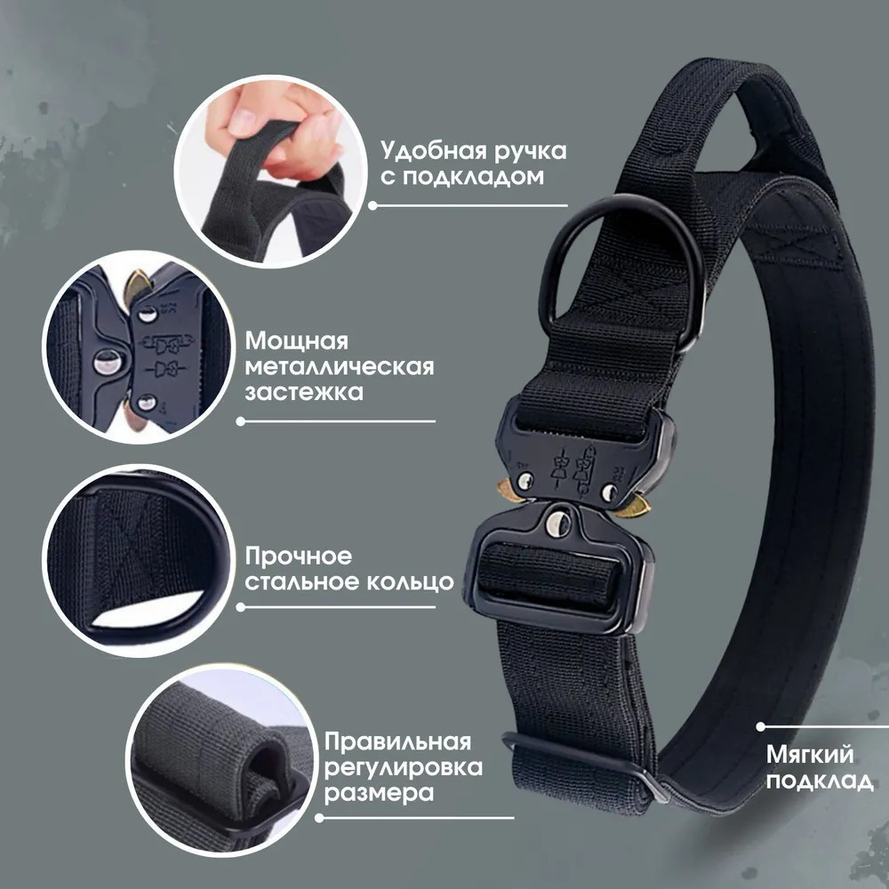 Ошейник усиленный для собак средних и крупных пород с ручкой и подкладом