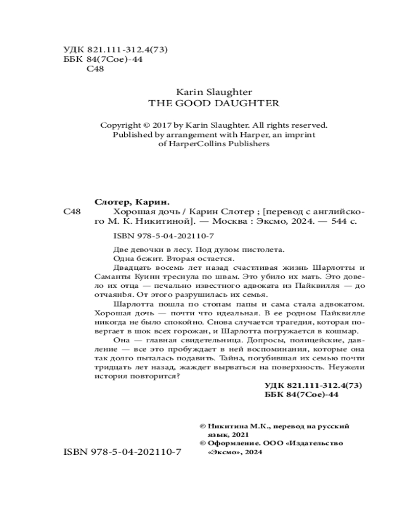 💳 Оплатить за товар можно при получении 🇰🇿 Есть бесплатная доставка по Казахстану 🎁 Копите бонусы с каждой покупки Серия: Tok. Триллеры от мастера жанра. Карин Слотер (обложка с клапанами) Две девочки в лесу. Под дулом пистолета. Одна бежит. Другая остается. |