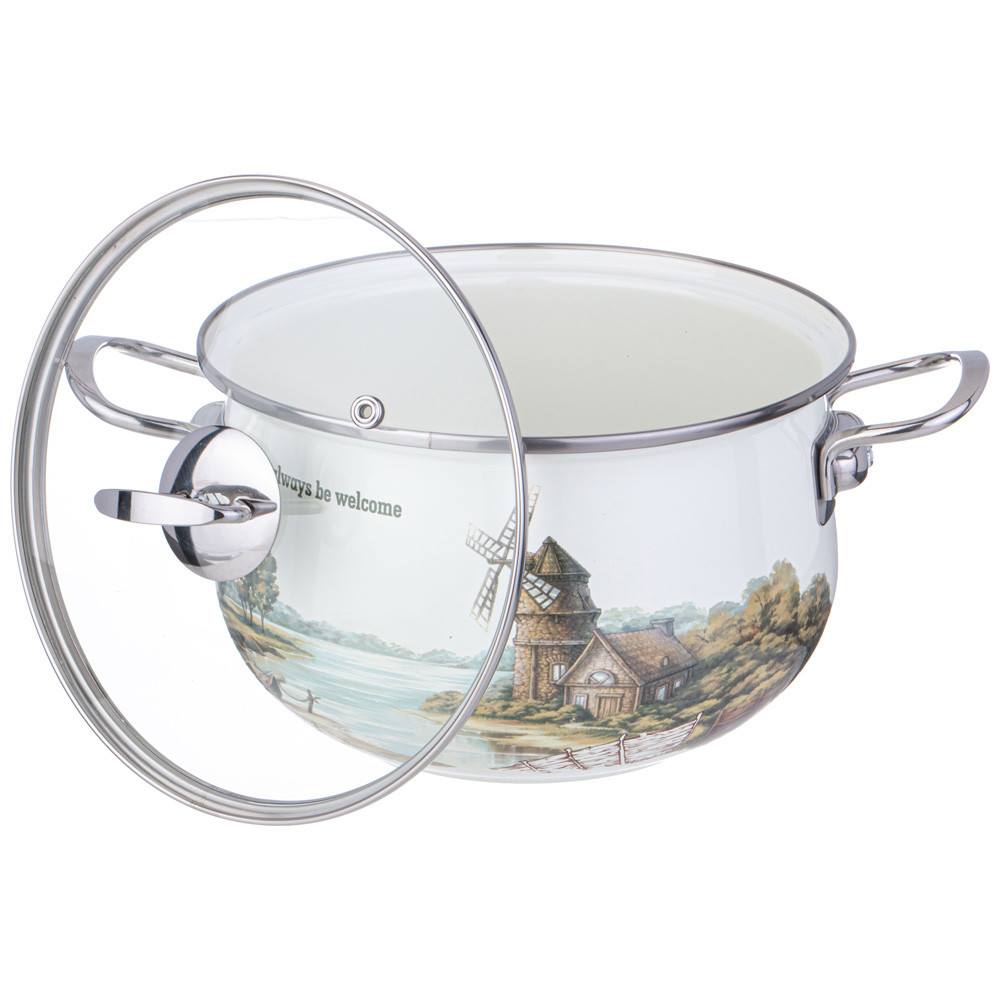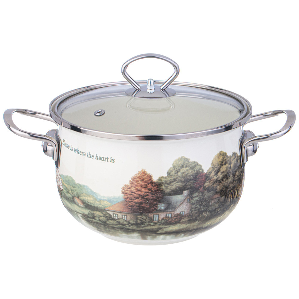 Agness Кастрюля эмалированная со стеклянной крышкой