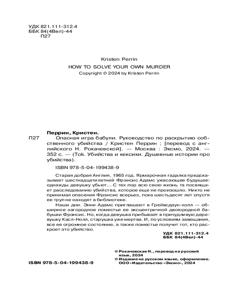 💳 Оплатить за товар можно при получении 🇰🇿 Есть бесплатная доставка по Казахстану от 1 дня 🎁 Копите бонусы с каждой покупки Серия: Tok. Убийства и кексики. Душевные истории про убийства Чрезвычайно забавный детектив о женщине, пытавшейся всю свою жизнь предотвратить предсказанное ей убийство. И доказала свою правоту спустя шестьдесят лет, когда ее нашли убитой в собственном загородном поместье. |