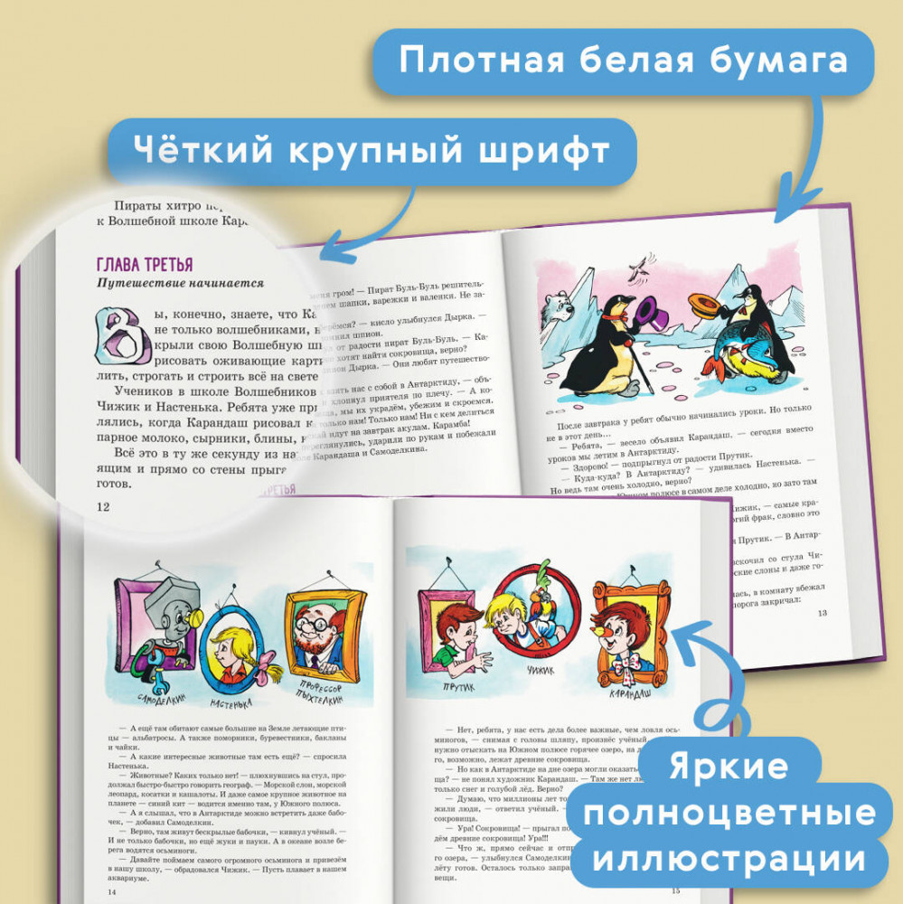 Серия: Карандаш и Самоделкин с иллюстрациями Александра Шахгелдяна Издание подарочного формата в твёрдом переплёте с выпуклыми элементами и частичным лаком. Цветные форзацы. Плотная белая бумага. Чёткий крупный шрифт. Яркие полноцветные иллюстрации.