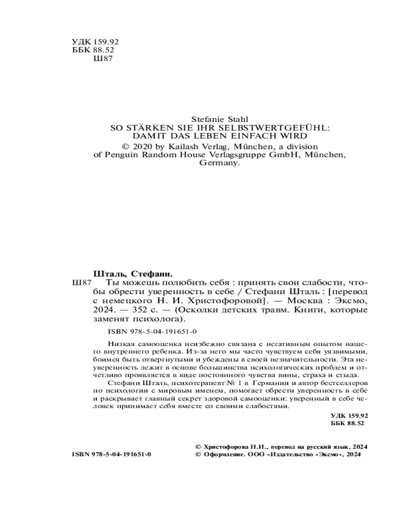 💳 Оплатить за товар можно при получении 🇰🇿 Есть бесплатная доставка по Казахстану от 1 дня 🎁 Копите бонусы с каждой покупки Серия: Осколки детских травм. Книги, которые заменят психолога «Никто не совершенен. Вы состоите из целого букета качеств и способностей. Если вдруг один цветок из вашего букета сломается, останется еще достаточно неповрежденных цветов. Так что ваш букет все равно красив, вам не нужно его стыдиться». — Стефани Шталь |