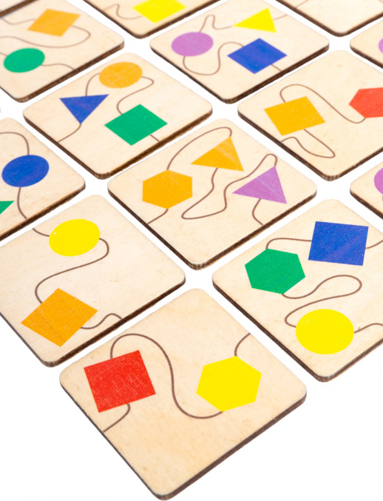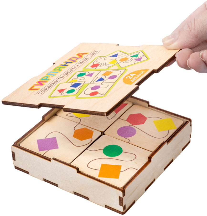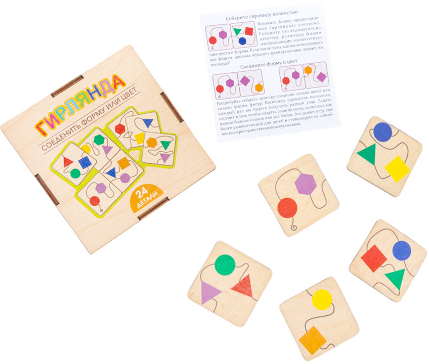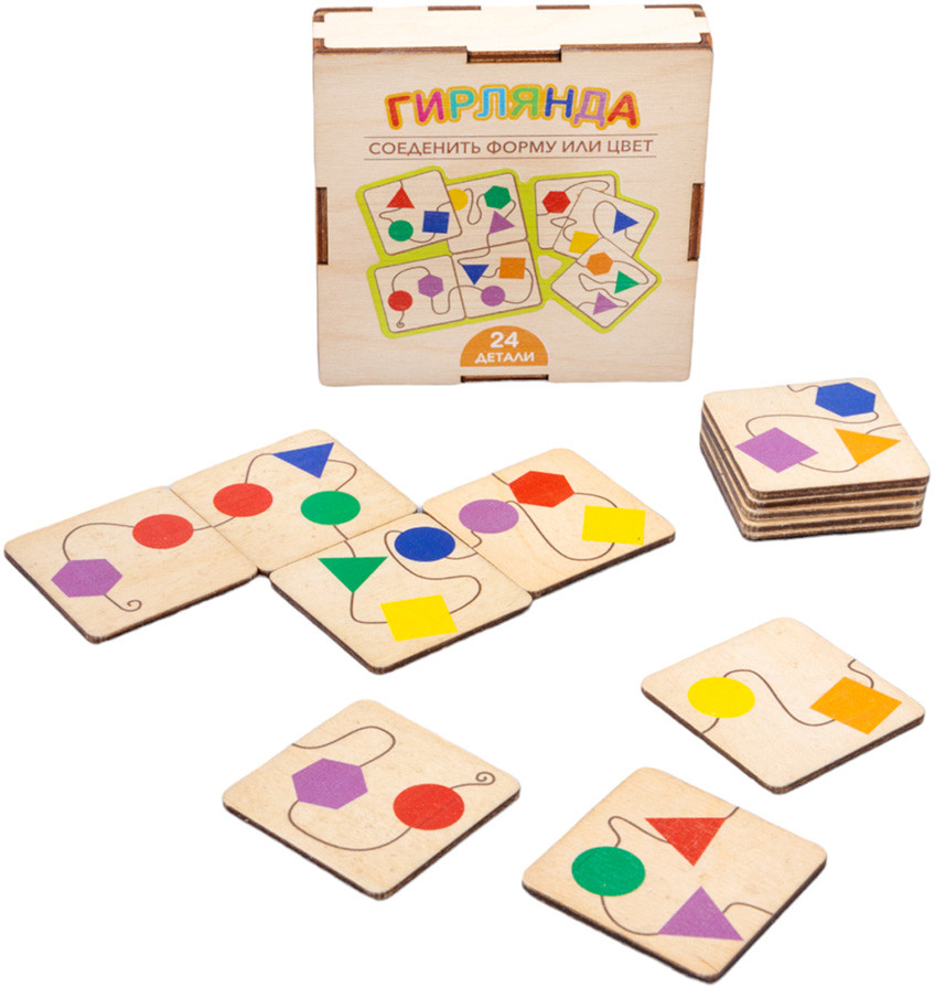 💳 Оплатить за товар можно при получении 🇰🇿 Есть бесплатная доставка по Казахстану от 1 дня 🎁 Копите бонусы с каждой покупки Деревянные пазлы для детей «Гирлянда» — интересная развивающая игра с элементами из древесного материала (экологичной березовой фанеры). На фишках изображены разноцветные геометрические фигуры, соединенные между собой «веревочками». Соединяйте «веревочки», подбирая фигуры по цвету или по форме. |