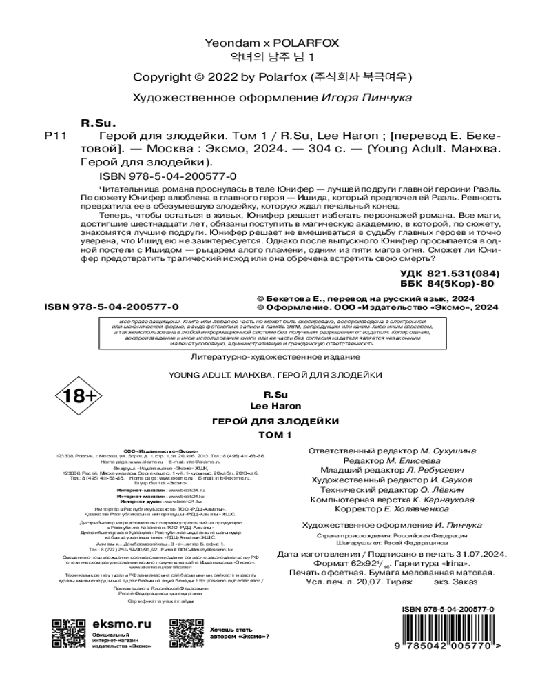 Серия: Young Adult. Манхва. Герой для злодейки Романтическая исекай манхва жанра дзёсэй официально на бумаге! Первый том про девушку, чья отчаянная любовь привела ее к погибели. |