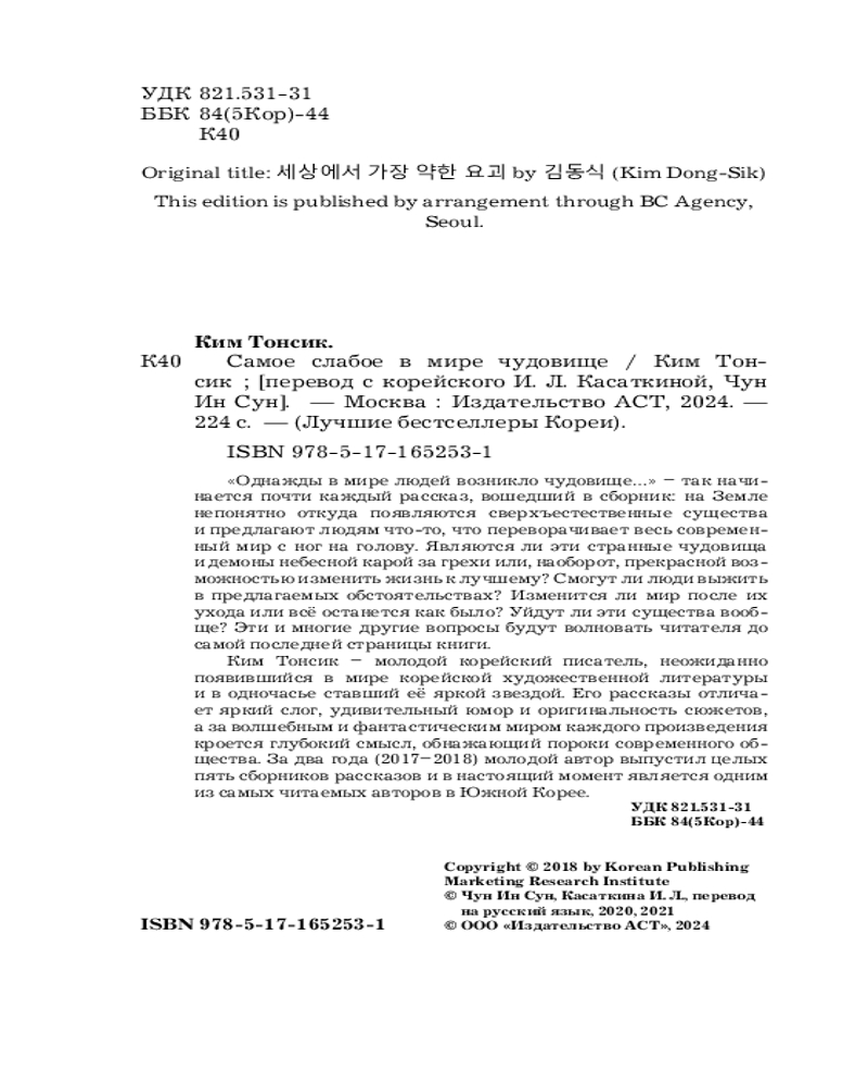 💳 Оплатить за товар можно при получении 🇰🇿 Есть бесплатная доставка по Казахстану от 1 дня 🎁 Копите бонусы с каждой покупки Серия: Лучшие бестселлеры Кореи «Однажды в мире людей возникло чудовище...» — так начинается почти каждый рассказ, вошедший в сборник: на Земле непонятно откуда появляются сверхъестественные существа и предлагают людям что-то, что переворачивает весь современный мир с ног на голову. Являются ли эти странные чудовища и демоны небесной карой за грехи или, наоборот, прекрасной возможностью изменить жизнь к лучшему? Смогут ли люди выжить в предлагаемых обстоятельствах? Изменится ли мир после их ухода или всё останется как было? Уйдут ли эти существа вообще? Эти и многие другие вопросы будут волновать читателя до самой последней страницы книги. |